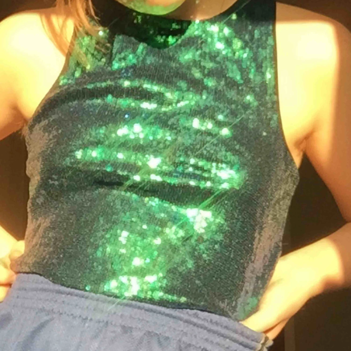 Grönblått paljettlinne. Perfekt till fest. Endast testad. Bekvämt och strechigt.