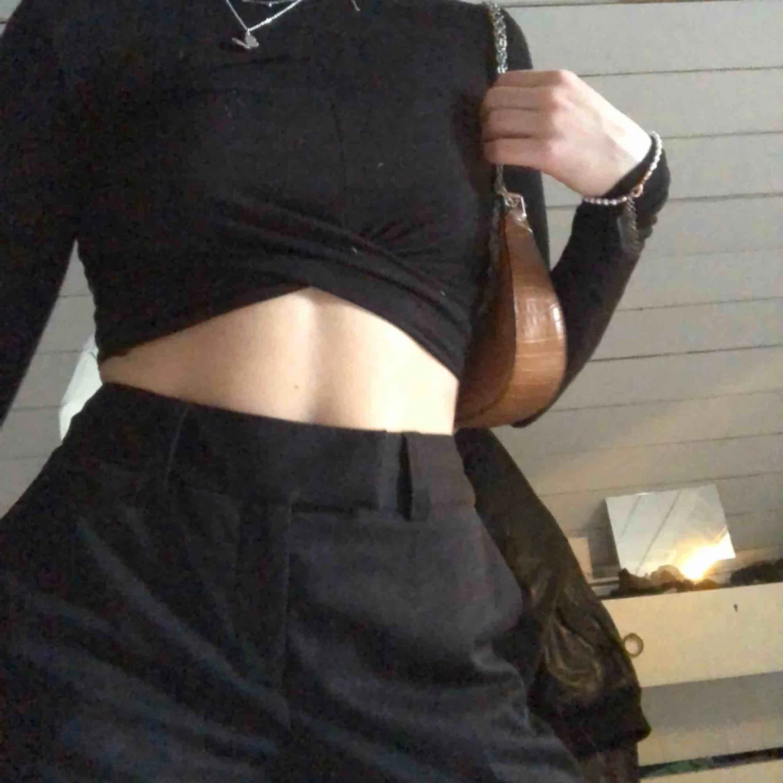 Vanlig svart croppad tröja med nån liten knytning. Skitsnygg till allt, knappt använd. Möts upp annars frakt 42kr.
