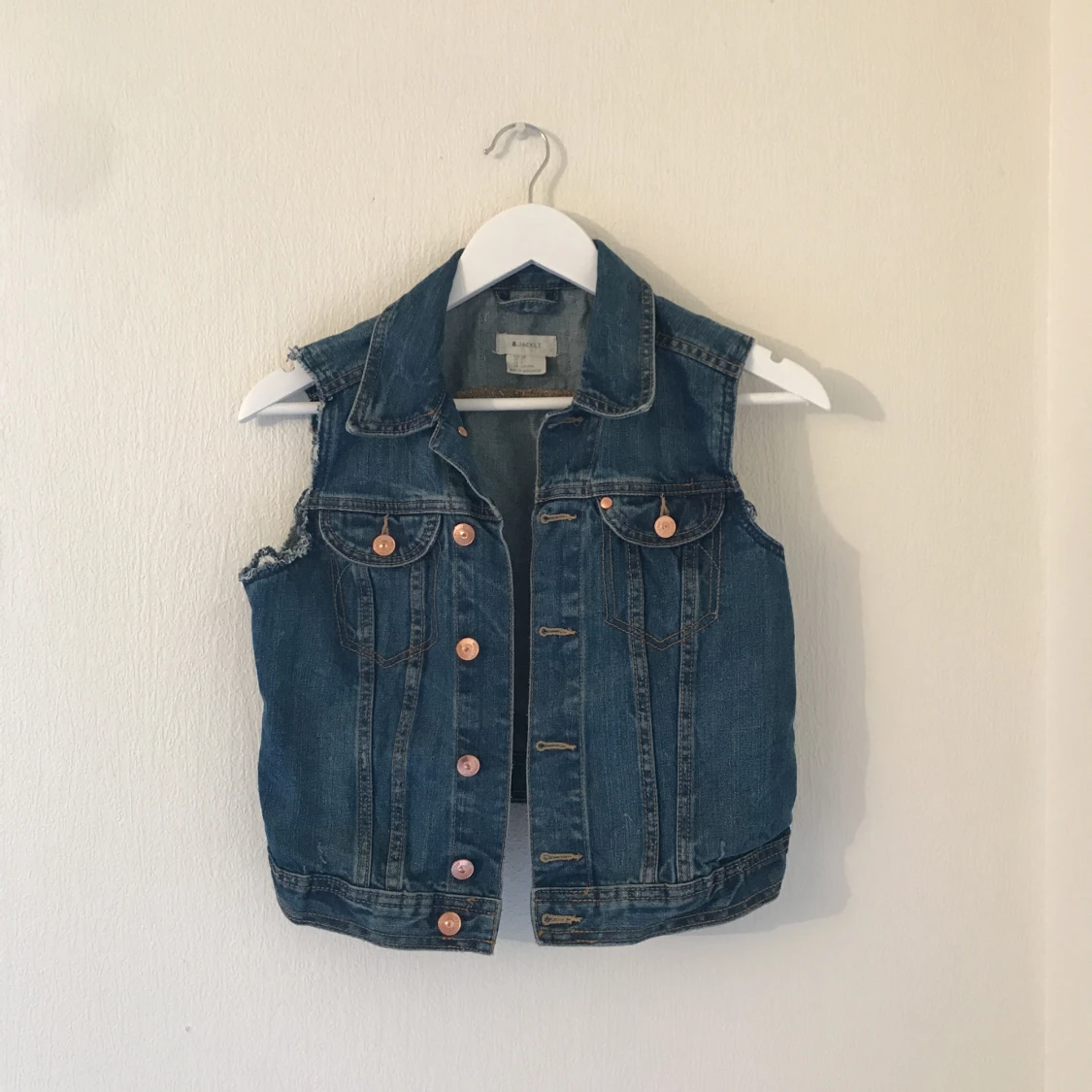 Jeansväst med slitningar i ärmarna