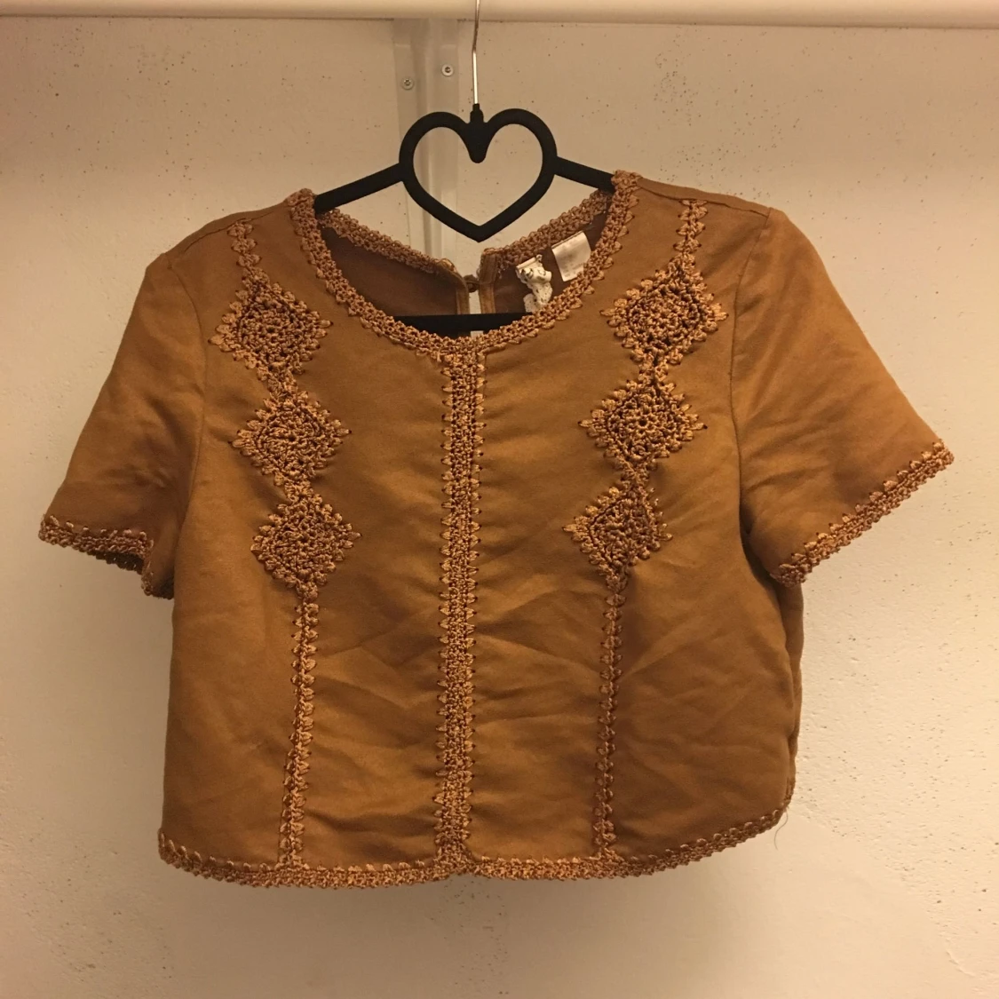 Fin crop-top från H&M, storlek 36. Köpt för två år sen, varsamt använd. Den är i mocka.
