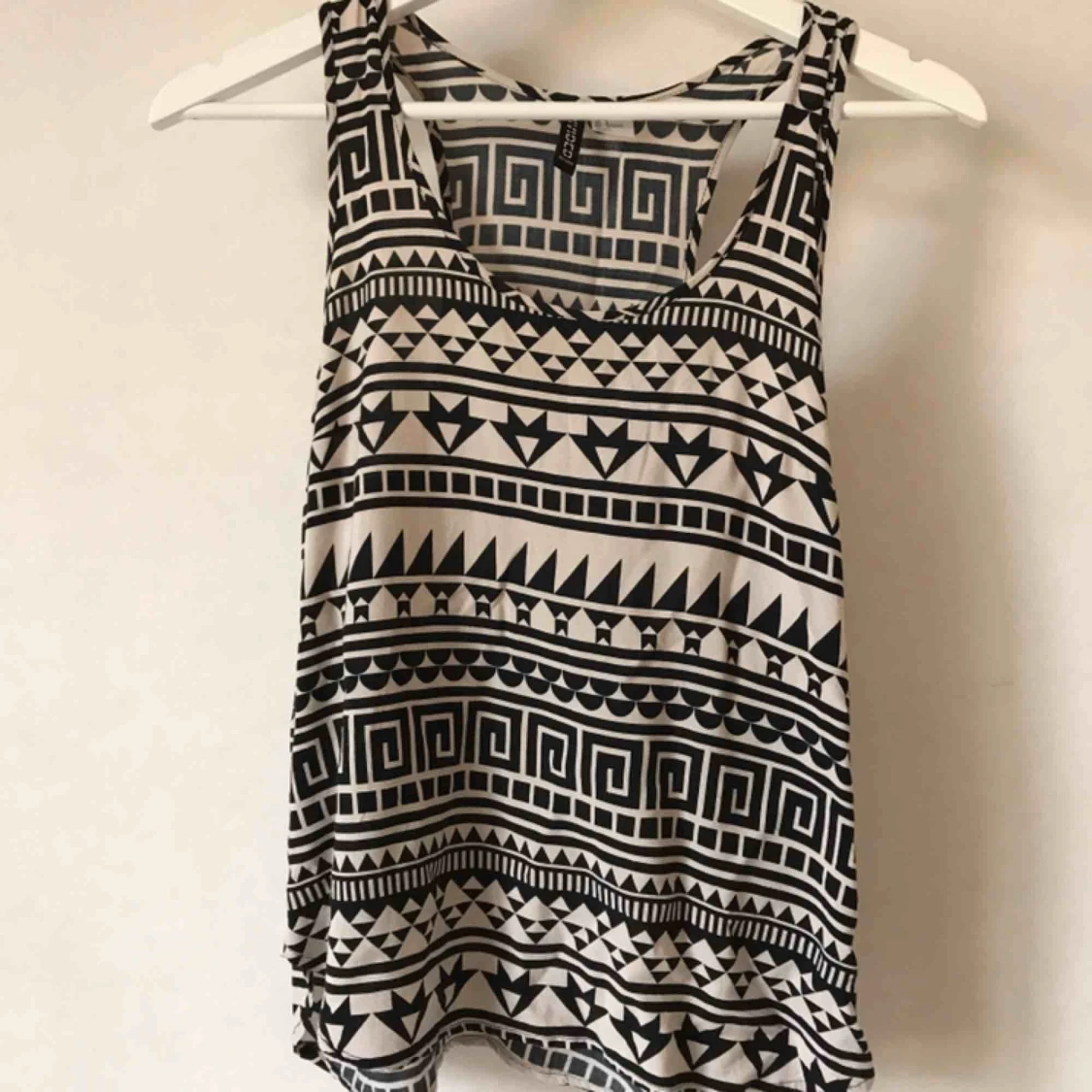 Mönstrat svartvitt linne, i skönt strävt sidenliknande material. Fint skick! Kan mötas i Stockholm eller skicka mot fraktkostnad! ✨🌸✨
