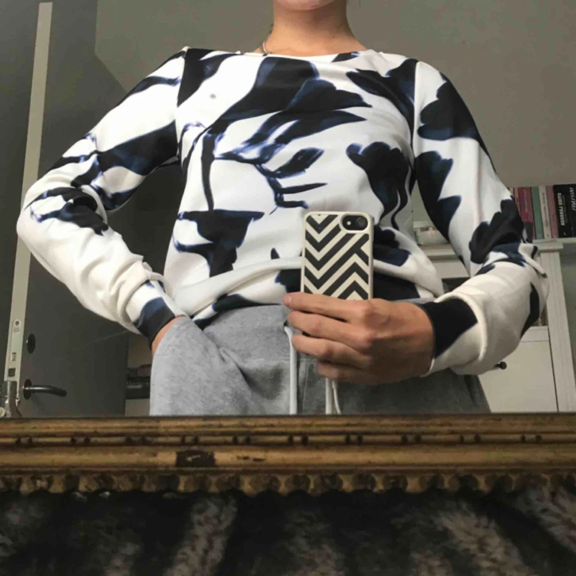 ”Scuba” liknande material med mörkblått mönster fram/bak. Varit en av mina favoriter!!