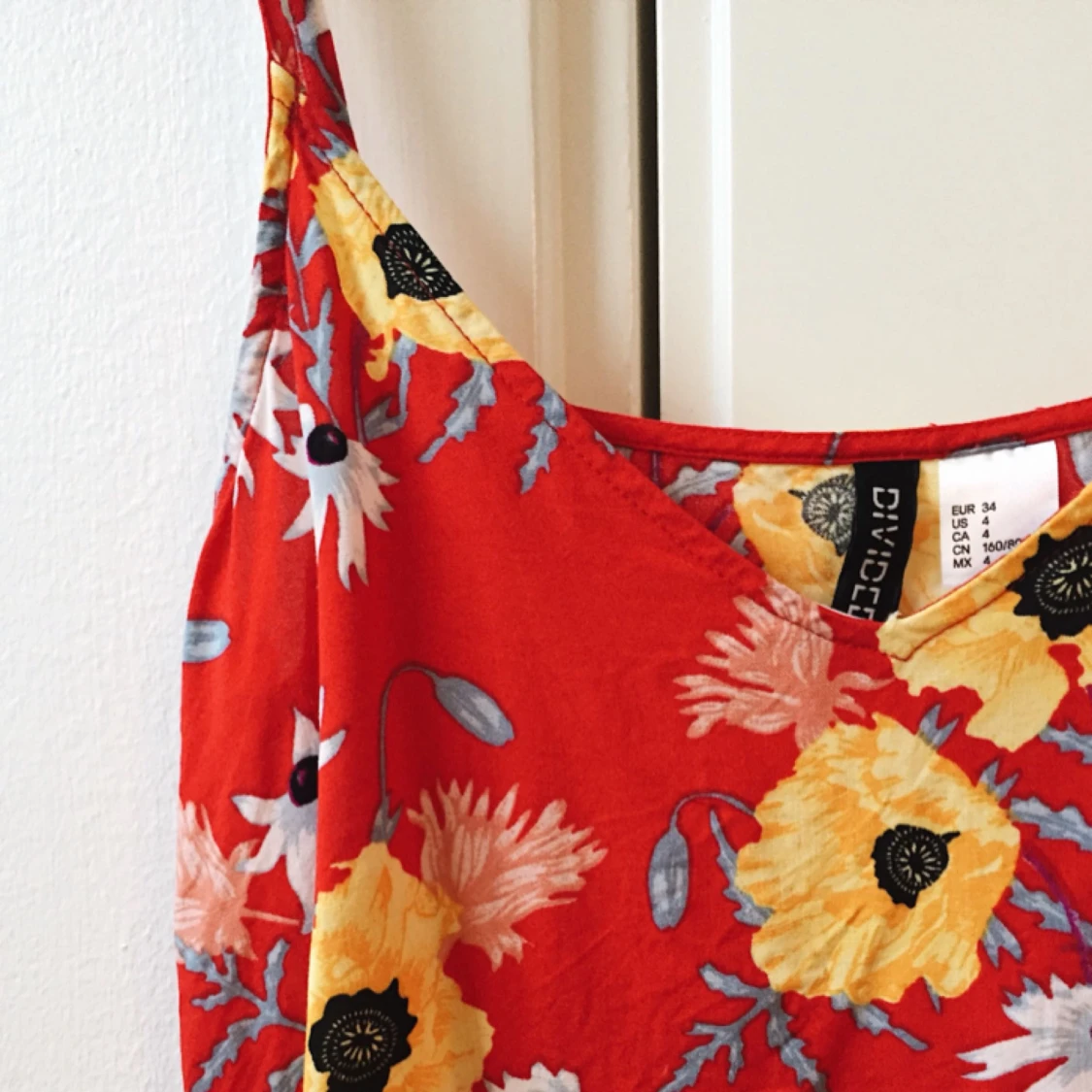Oanvänt Rött linne med stora blommor från H&M. Justerbara band.