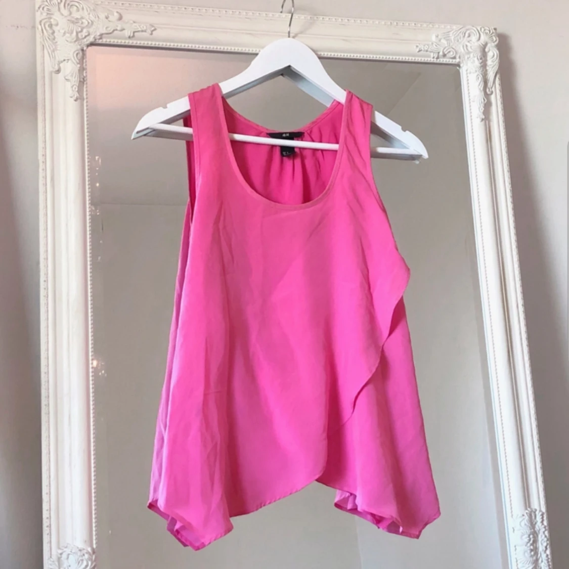 Färg: Cerise/rosa. Strl: 34. Fint linne från H&M. Omlott framtill, fin detalj och fint fall på linnet. Använd vid 3 tillfällen, dvs bra skick. Kommer ej till användning och stor garderobsrensning pågår! Pris: 100 inkl frakt.