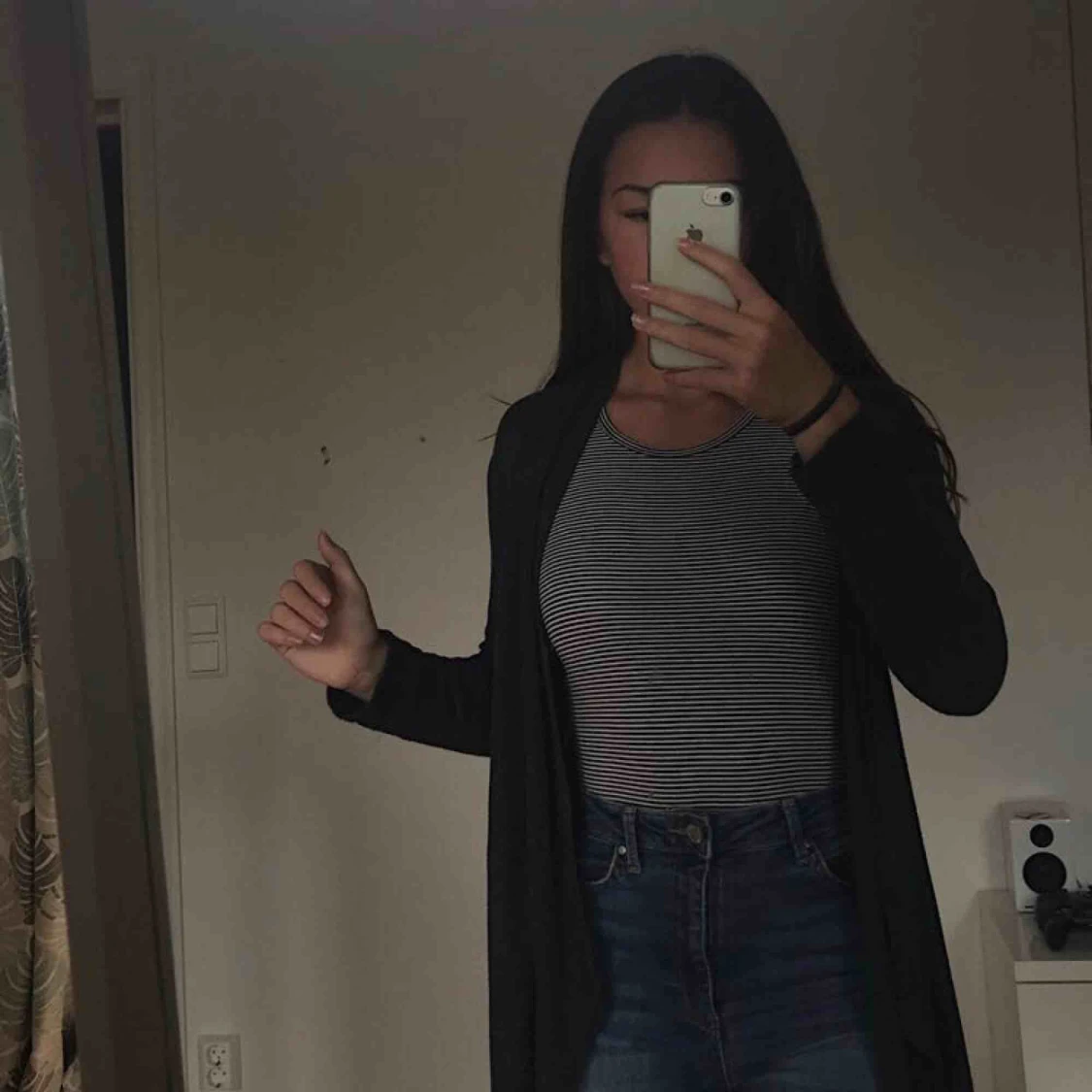 Randigt linne från H&M! Svarta och vita ränder. Linnet är ganska så långt, själv så går ner till höfterna på mig. Köpare står för frakt🚛