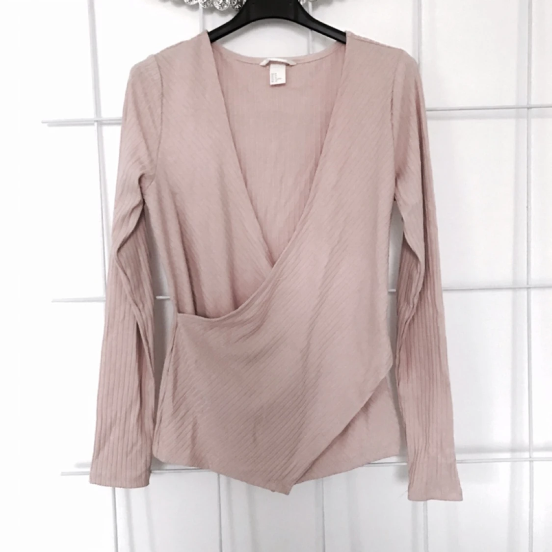 Ribbad rosa tröja i omlottmodell, endast använd en gång. Kan bäras som ganska tight på en M eller aningen lösare på en S. Kan skicka fler bilder om så önskas!