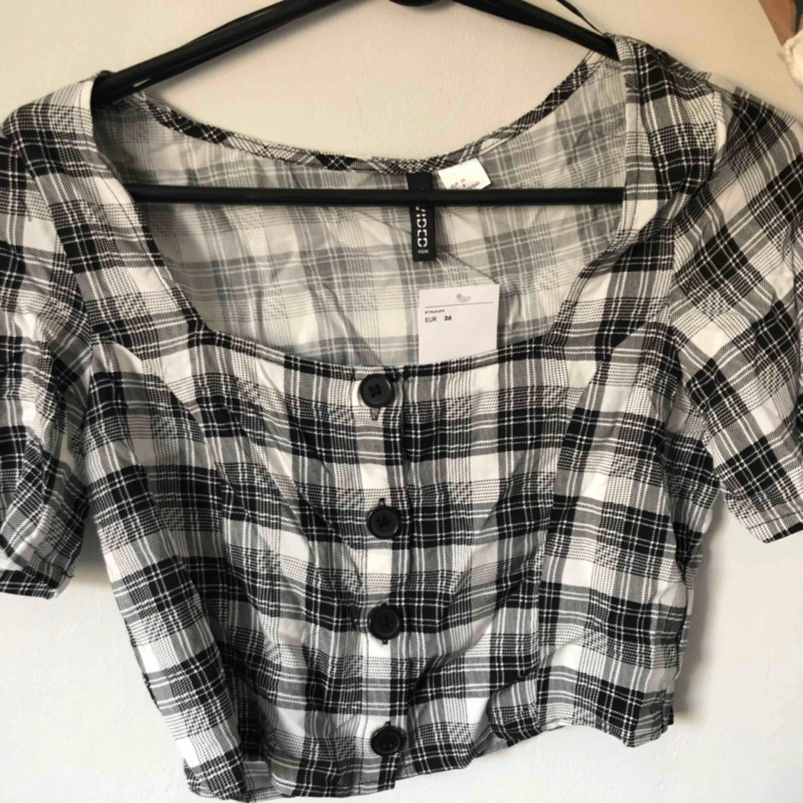 Säljer denna super söta rutiga topp med knappar pga att den är för liten för mig. Helt oanvänd med lappar kvar.