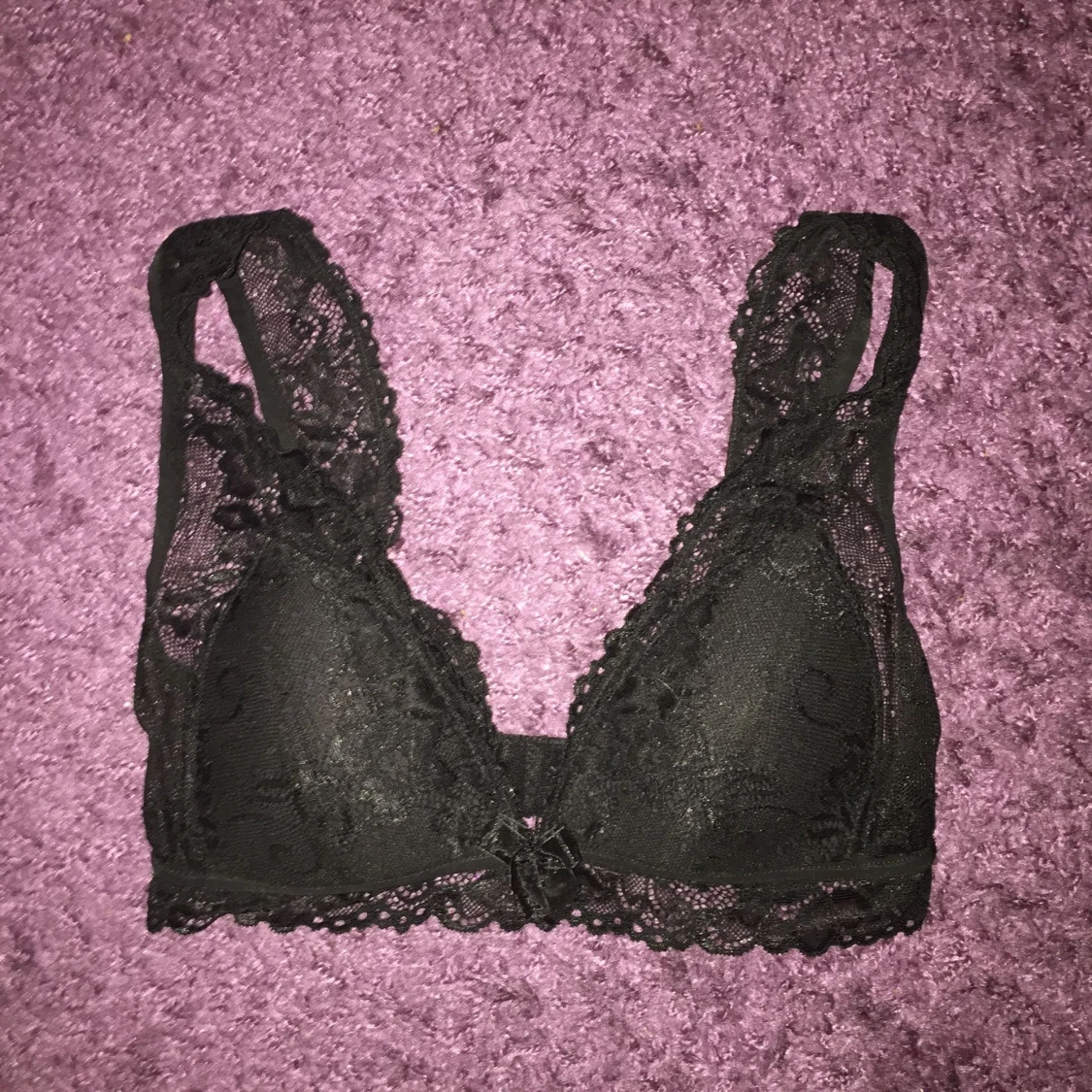 Söt spets-bh utan byglar, klippt bort lappen så vet ej exakt storlek men skulle gissa på xs/s, bra skick. Frakt på 35kr tillkommer