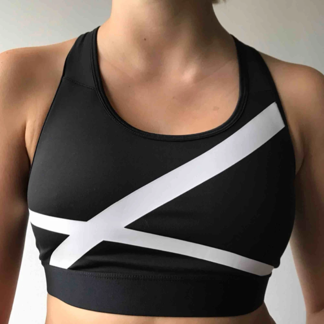 Oanvänt sport-bh svart med vita detaljer!