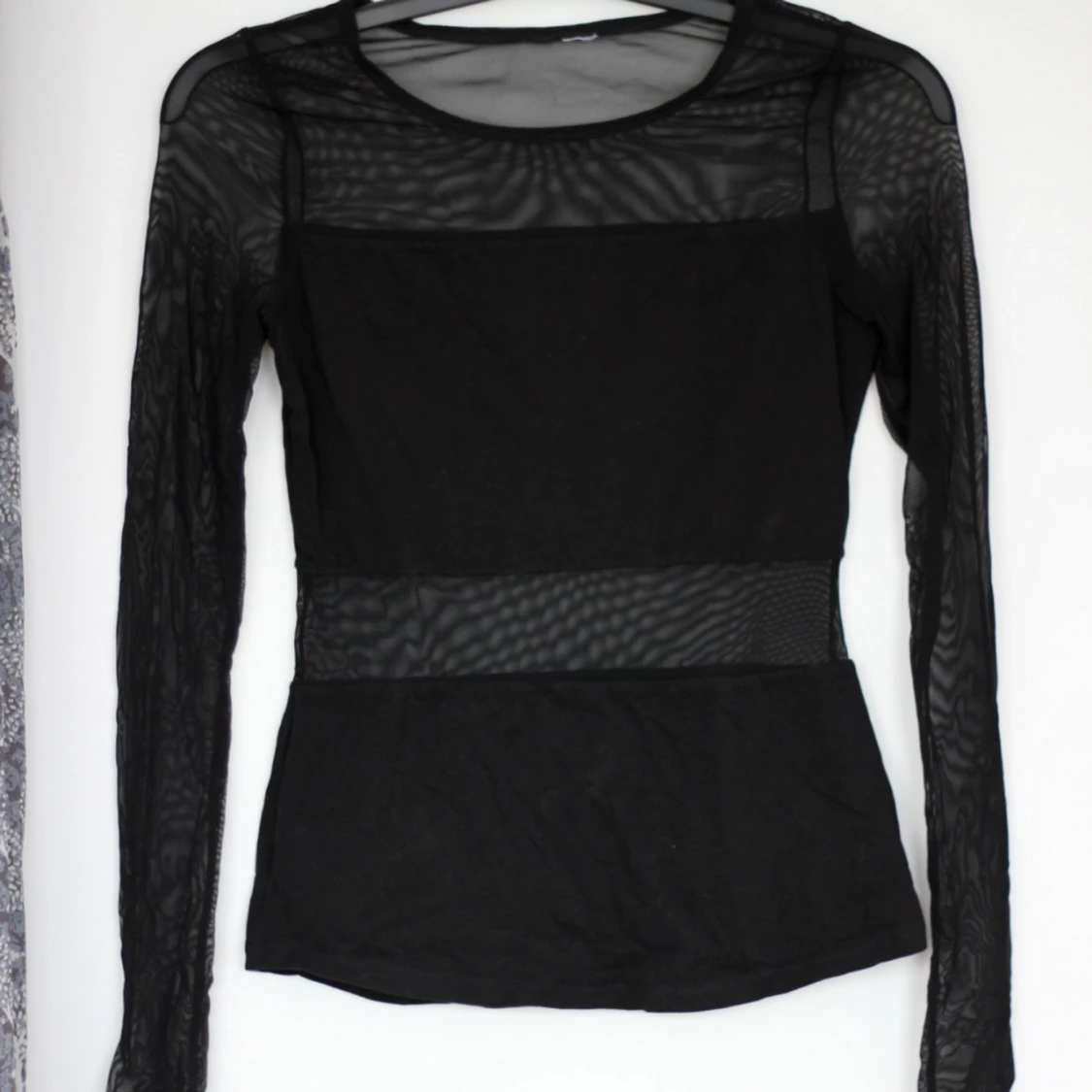 Genomskinlig topp med partier av tyg. Ryggen har samma partier med tyg. Köpt på H&M Divided, storlek XS. Sparsamt använd. Möts upp i Göteborg eller fraktar mot betalning.