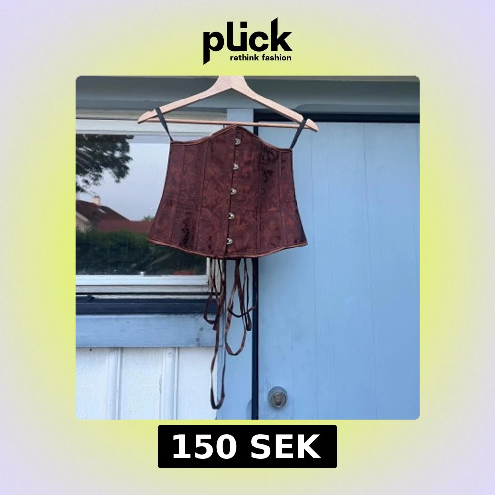Säljer en brun korsett med dekorativt mönster och snörning bak. Perfekt för att lyfta en outfit med en unik touch.