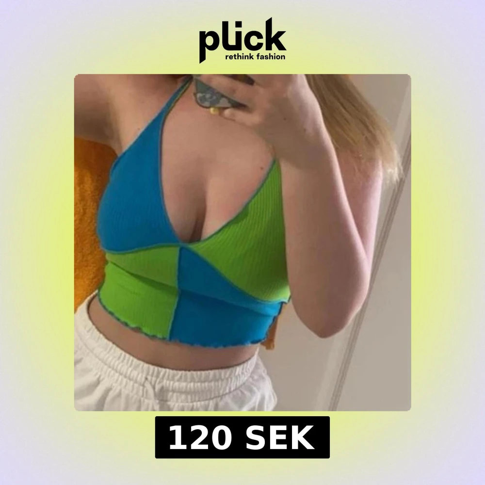 Säljer en unik halter-topp med färgblock i grönt o blått från utländska märket primark. Den är perfekt att ha på fester 💕Köpte den i Edinburgh men har knappt använt den så därför jag väljer att sälja :) Storlek M (40/42)🫶🏻pris kan diskuteras :)
