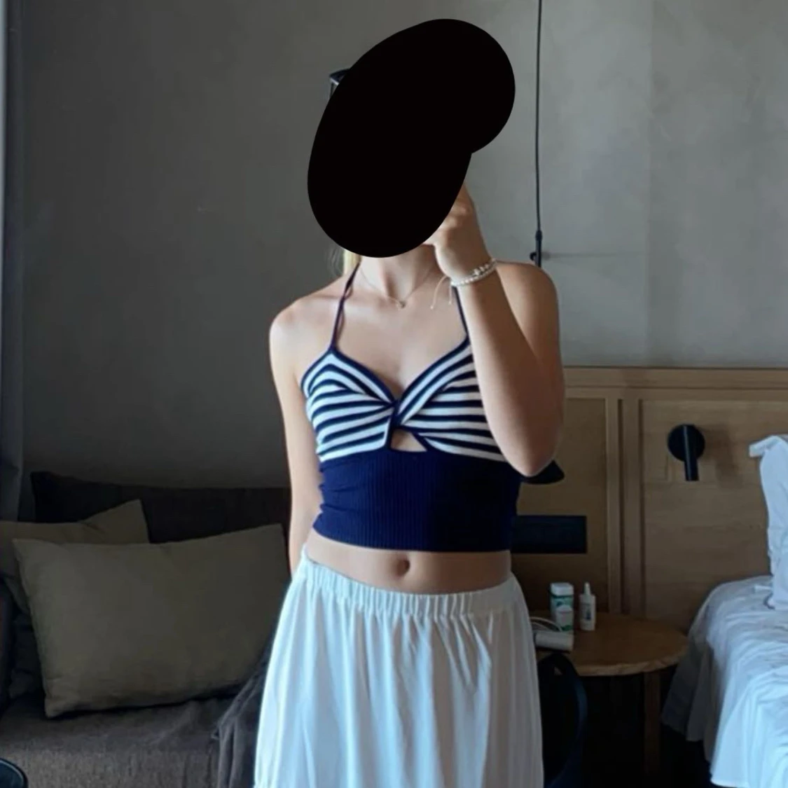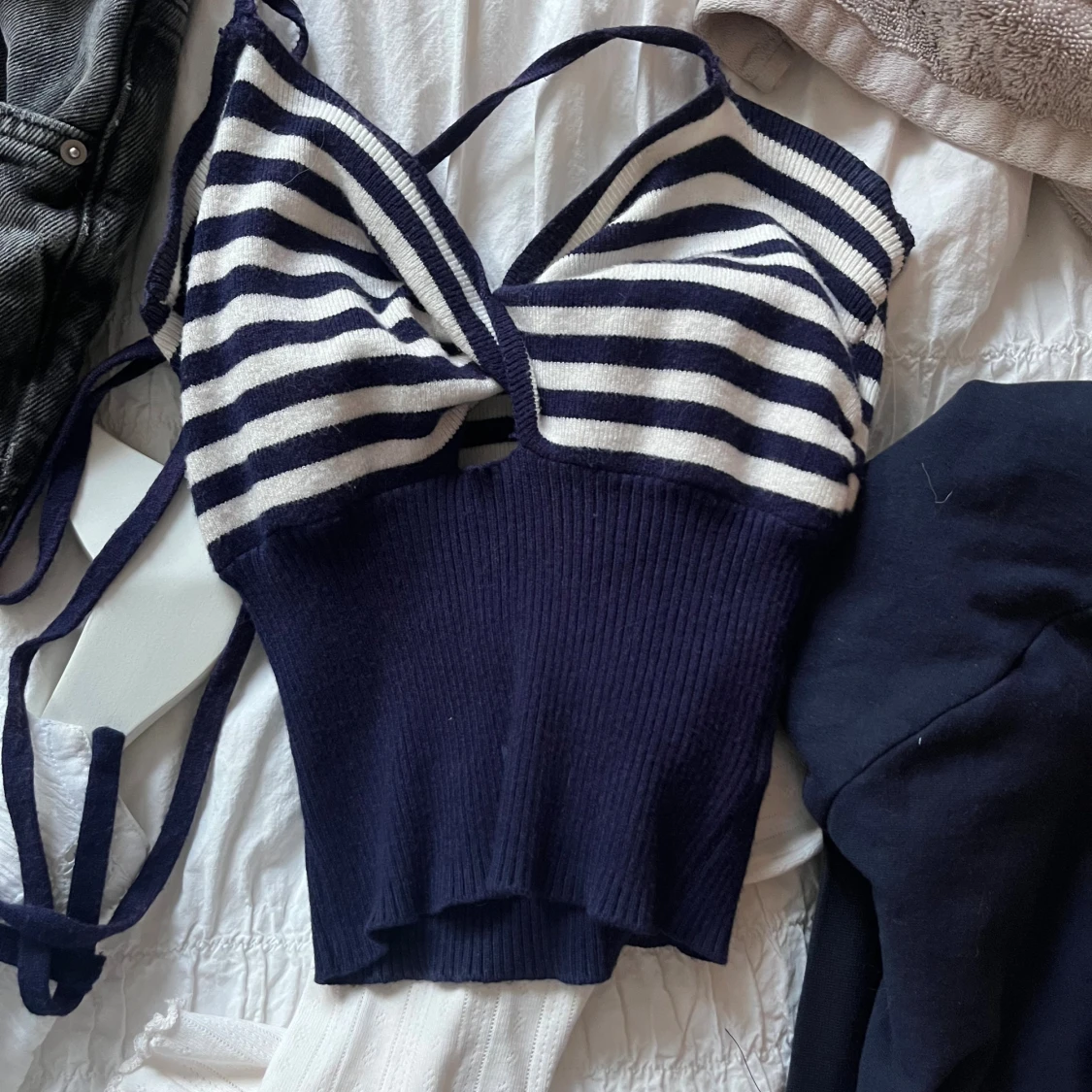 Marinblå stickad randig halterneck topp från cider. Köpt för ett tag sedan men inte använd så mycket. Fortfarande fint skicka