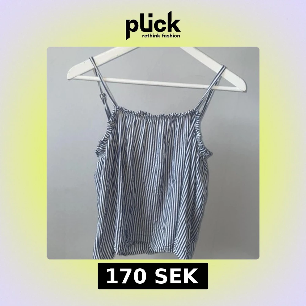 Säljer en blåvit randig linnetopp från Hampton Republic med smala axelband och söt volangkant upptill. Toppen har knytning bak och är tillverkad i ett lätt och luftigt bomullsmaterial. Perfekt för varma dagar och enkel att styla med jeans eller shorts.Bra skick❤️