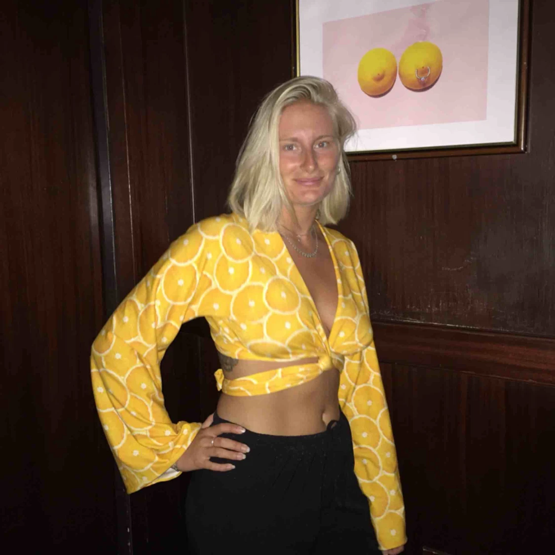 Cool knyt top med utsvängda armar och apelsintryck sydd av mig 🍋🍋 öppen i ryggen och funkar bra för flera storlekar!