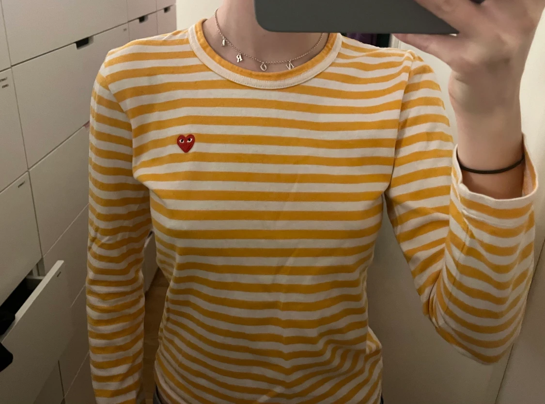 så smickrande o snygg cdg play tröja med litet hjärta, sparsamt använd o jättebra kvalitet💕