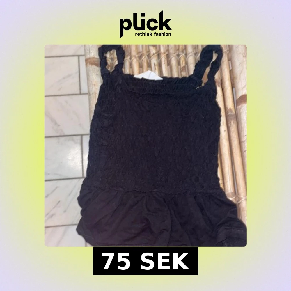 Svart linnetopp från H&M med smockad överdel och breda, flätade axelband. Toppen har en volangkant nedtill som ger en söt och trendig look. Perfekt att styla med jeans eller kjol för en chill vibe. Materialet är mjuk bomull.