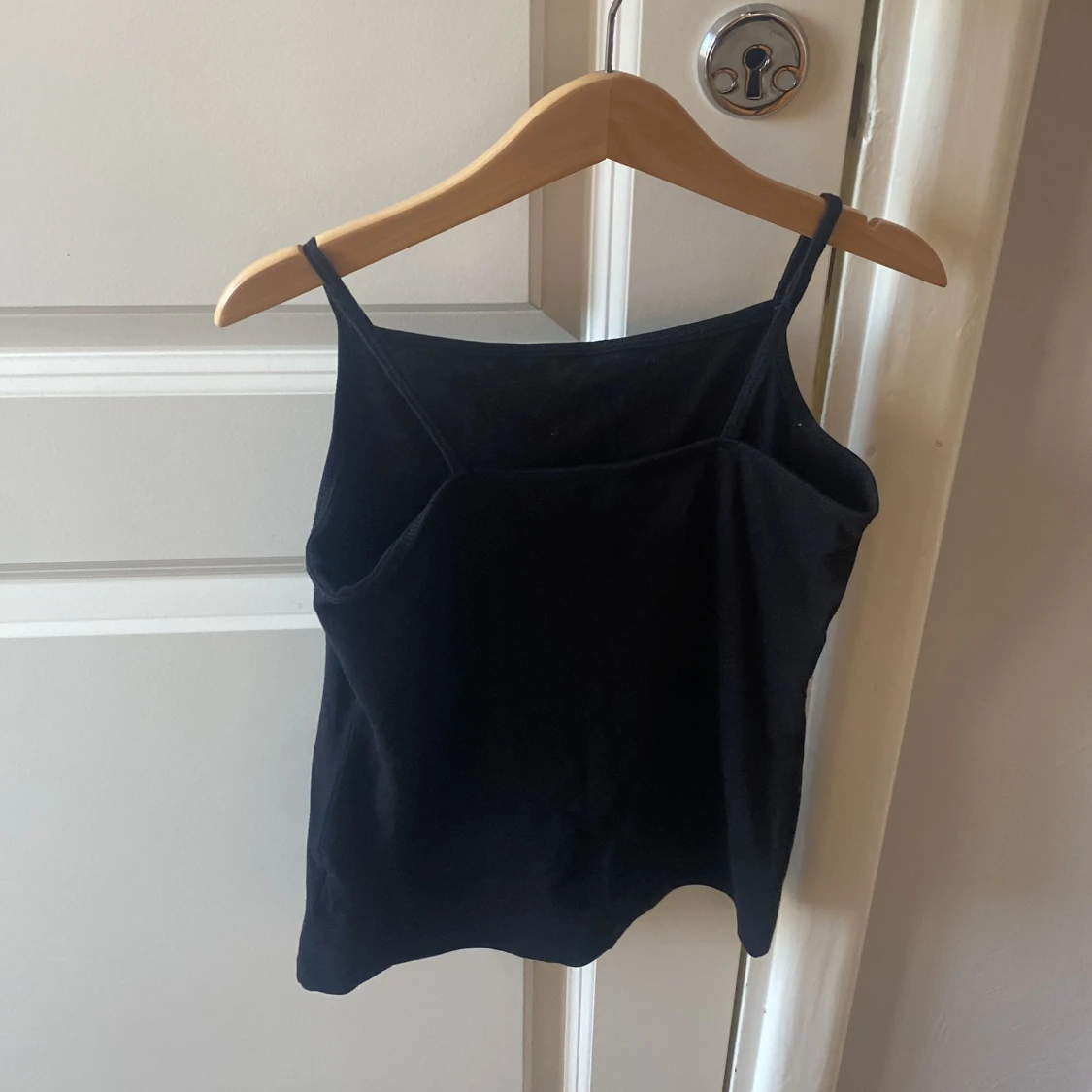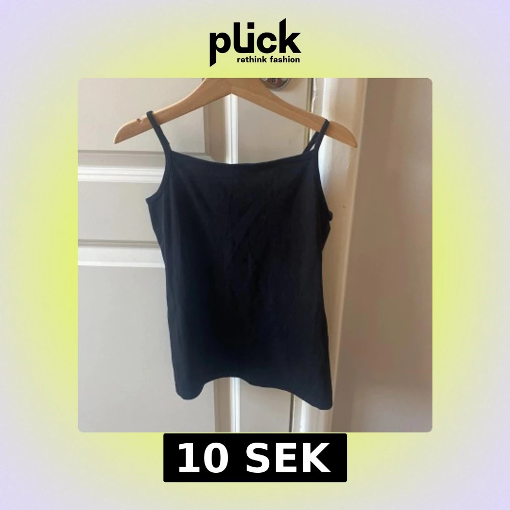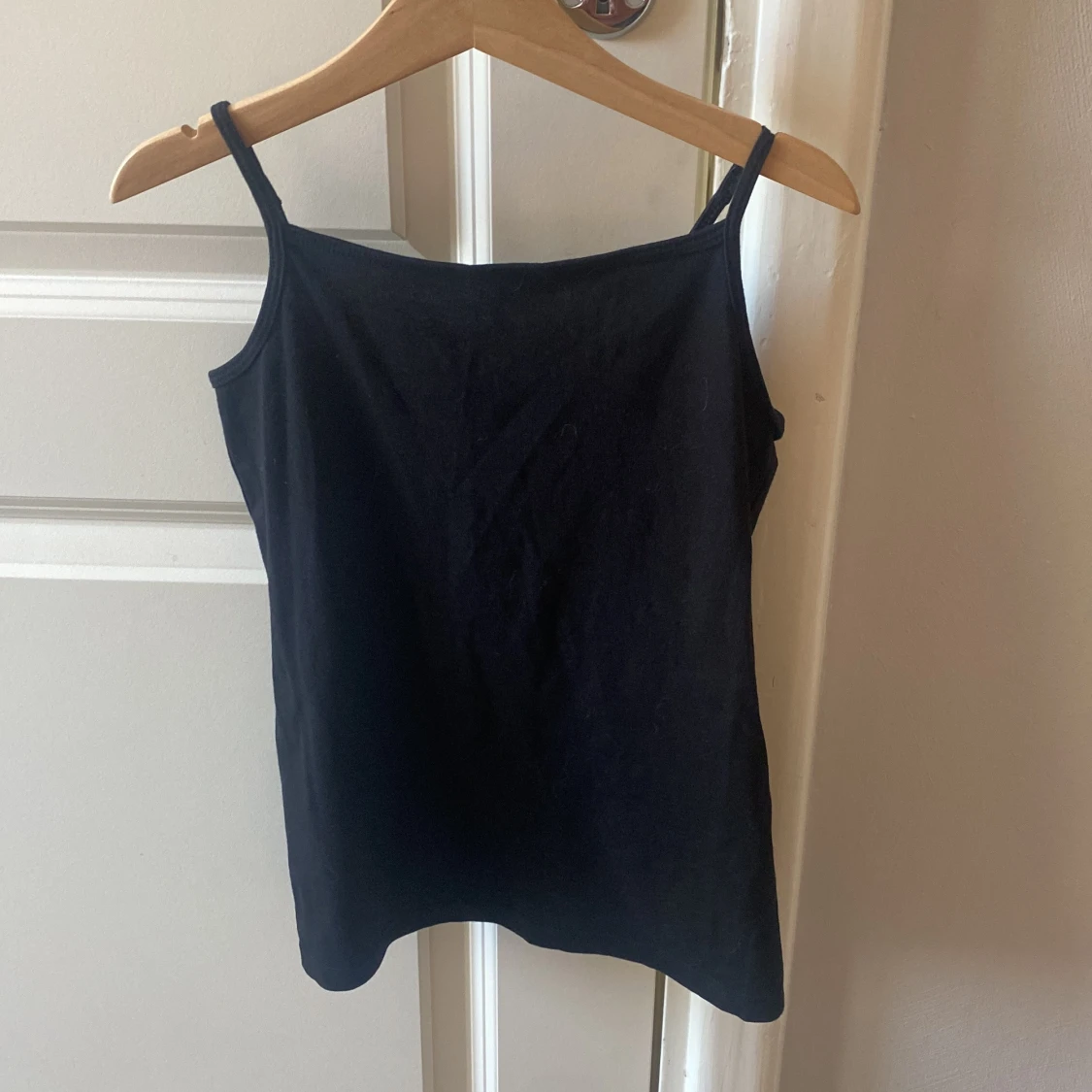 En enkel svart linnetopp från H&M Basic, tillverkad i mjuk ekologisk bomull. Toppen har smala axelband och en rak, klassisk passform som funkar till allt. Perfekt att styla med jeans eller shorts för en chill look.