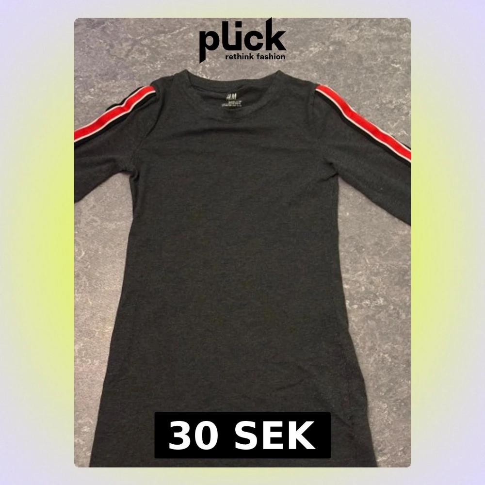 Svart långärmad topp från H&M med coola röda och vita ränder längs axlarna. Rund halsringning och slim passform. Perfekt för dig som gillar sportig stil och vill ha något enkelt men ändå med en snygg detalj på ärmarna.