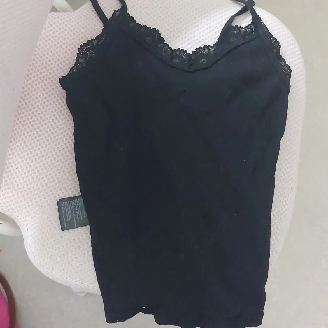 svart linne från H&M med spetsdetaljer vid axelbanden. Storlek 146-152 typ xxs