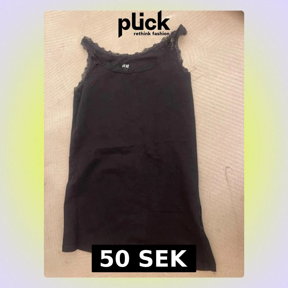 Snygg svart linnetopp från H&M med tunna axelband och dekorativ spetskant runt halsringningen och axelbanden. Perfekt att styla lager på lager eller bära som den är. Mjuk och skön bomullskvalitet. För barn i storlek 146/152 för 10-12 år