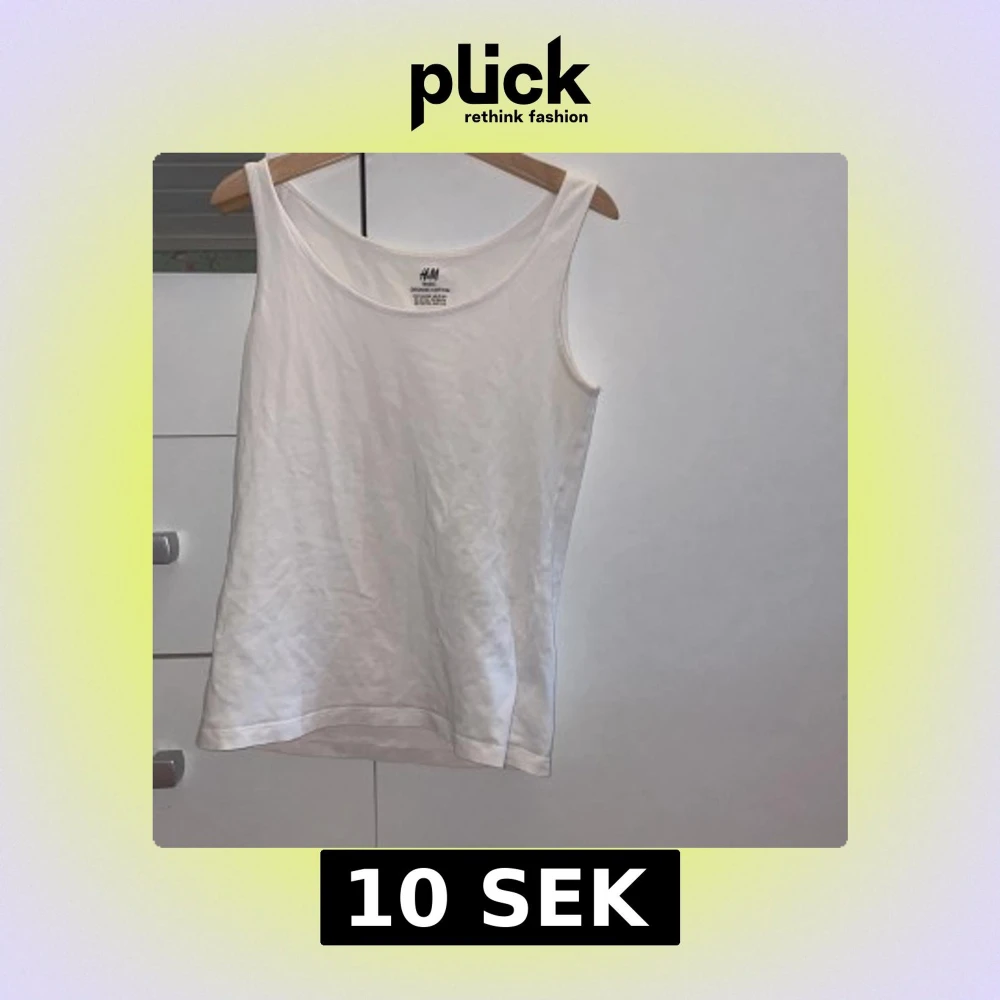 Enkel och fräsch vit linnetopp från H&M Basic i ekologisk bomull. Klassisk rund halsringning och ärmlös design, perfekt för varma dagar eller som lager under andra plagg. Snygg och stilren bas som funkar till allt.