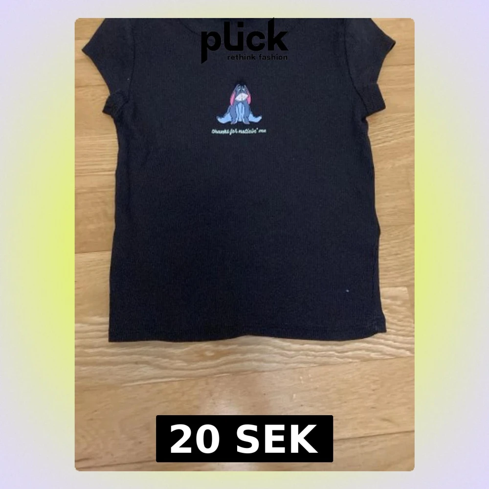 Kortärmad svart ribbad topp med ett tryck av Ior från Nalle Puh och texten 'thanks for noticin' me' på bröstet. Toppen har en slim passform och är perfekt för en avslappnad stil.