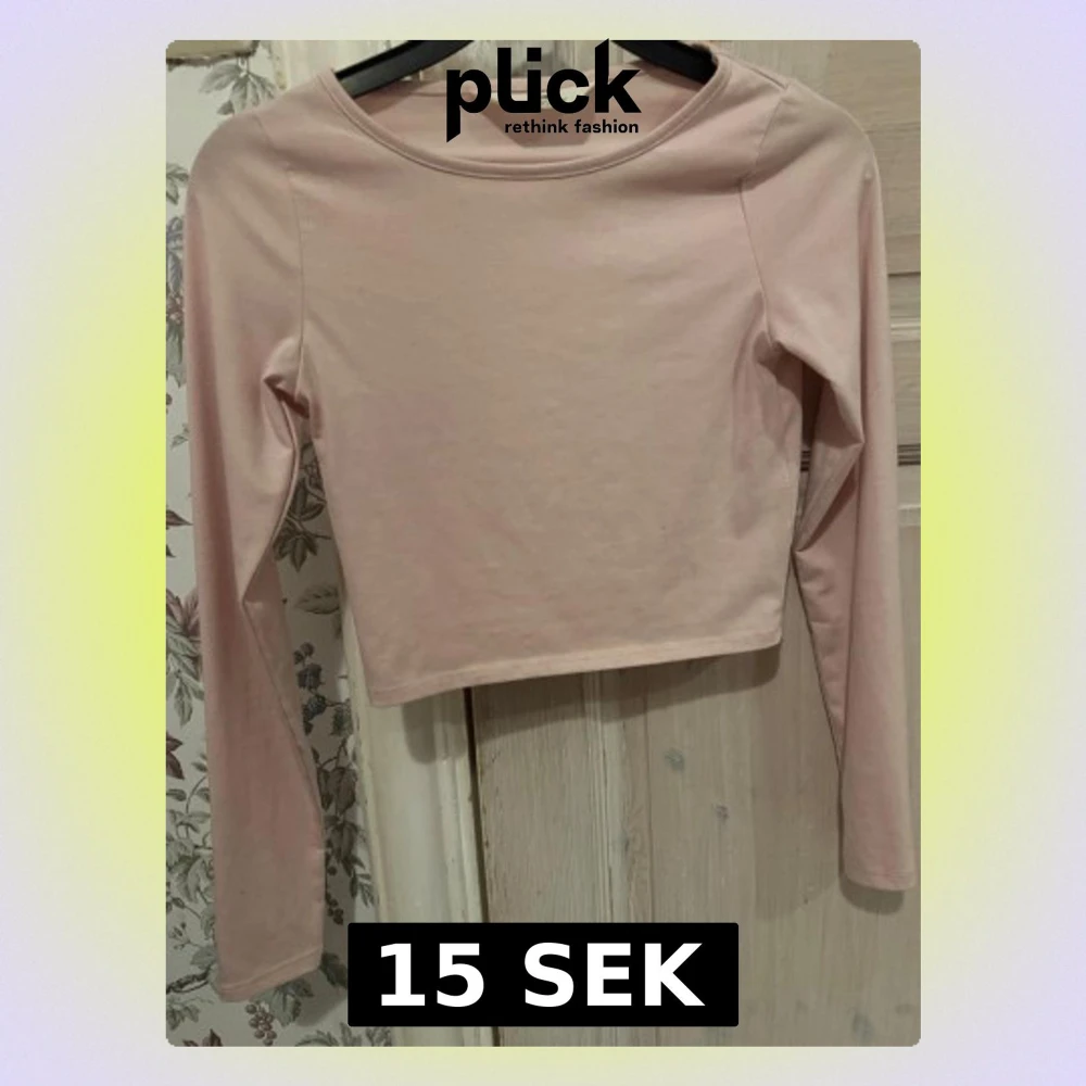 En stilren ljusrosa långärmad topp från H&M. Modellen är croppad med rund halsringning och är tillverkad i mjuk bomull. Perfekt att matcha med höga jeans eller kjol för en clean look.