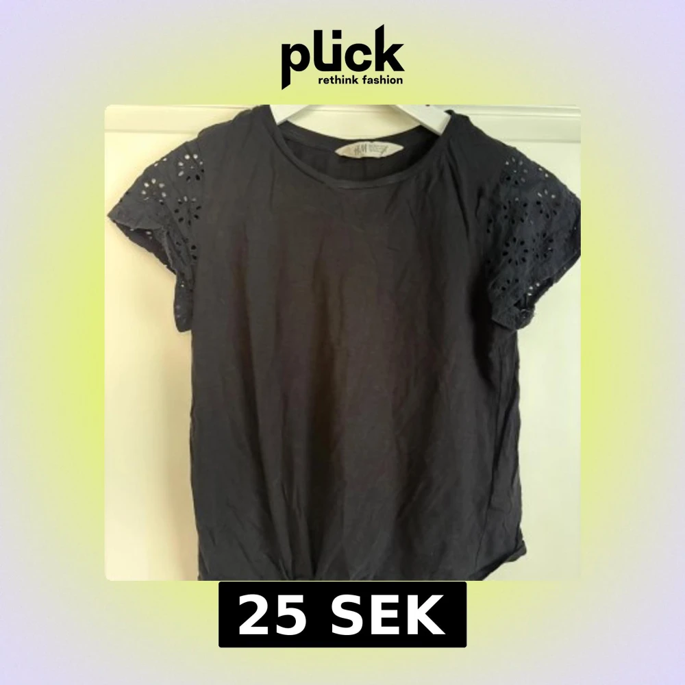 Svart blus från H&M med korta ärmar i broderad bomull och blommiga håldetaljer. Rund halsringning och avslappnad passform. Perfekt för dig som gillar en enkel men ändå söt stil. Verkar vara lite blå färg längst ner på ryggen