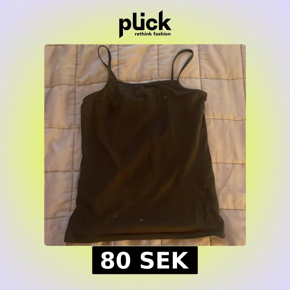 En enkel svart linnetopp från H&M Basic i ekologisk bomull. Toppen har smala axelband och rak passform, perfekt för varma dagar eller som lager under andra plagg.