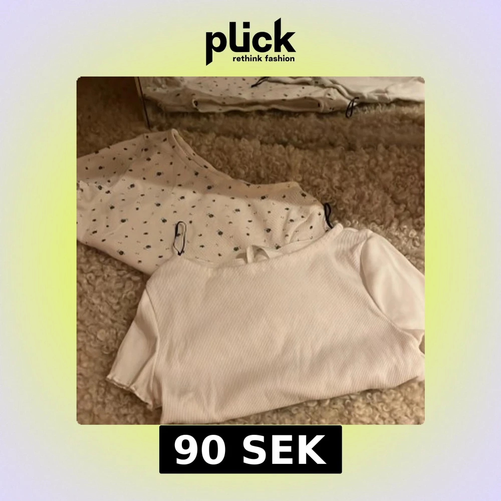 Säljer två vitta ribbade toppar från H&M. Topparna har korta ärmar och en enkel design som passar perfekt till vardags. De är mjuk och bekväm att bära.