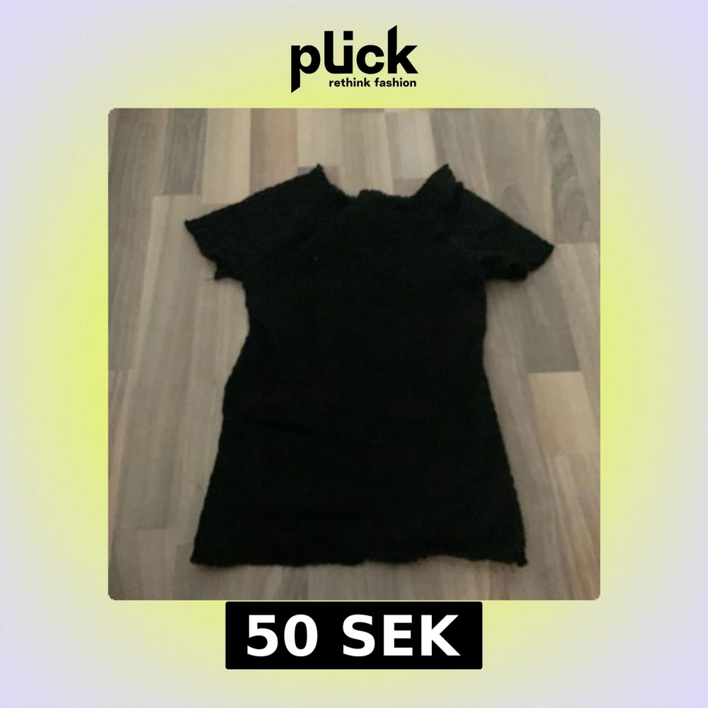 Svart smockad topp från H&M med korta ärmar och stretchig passform. Toppen har en lätt rynkad struktur och volangkant vid halsringning och ärmslut. Perfekt att styla med jeans eller kjol för en cool och enkel look.