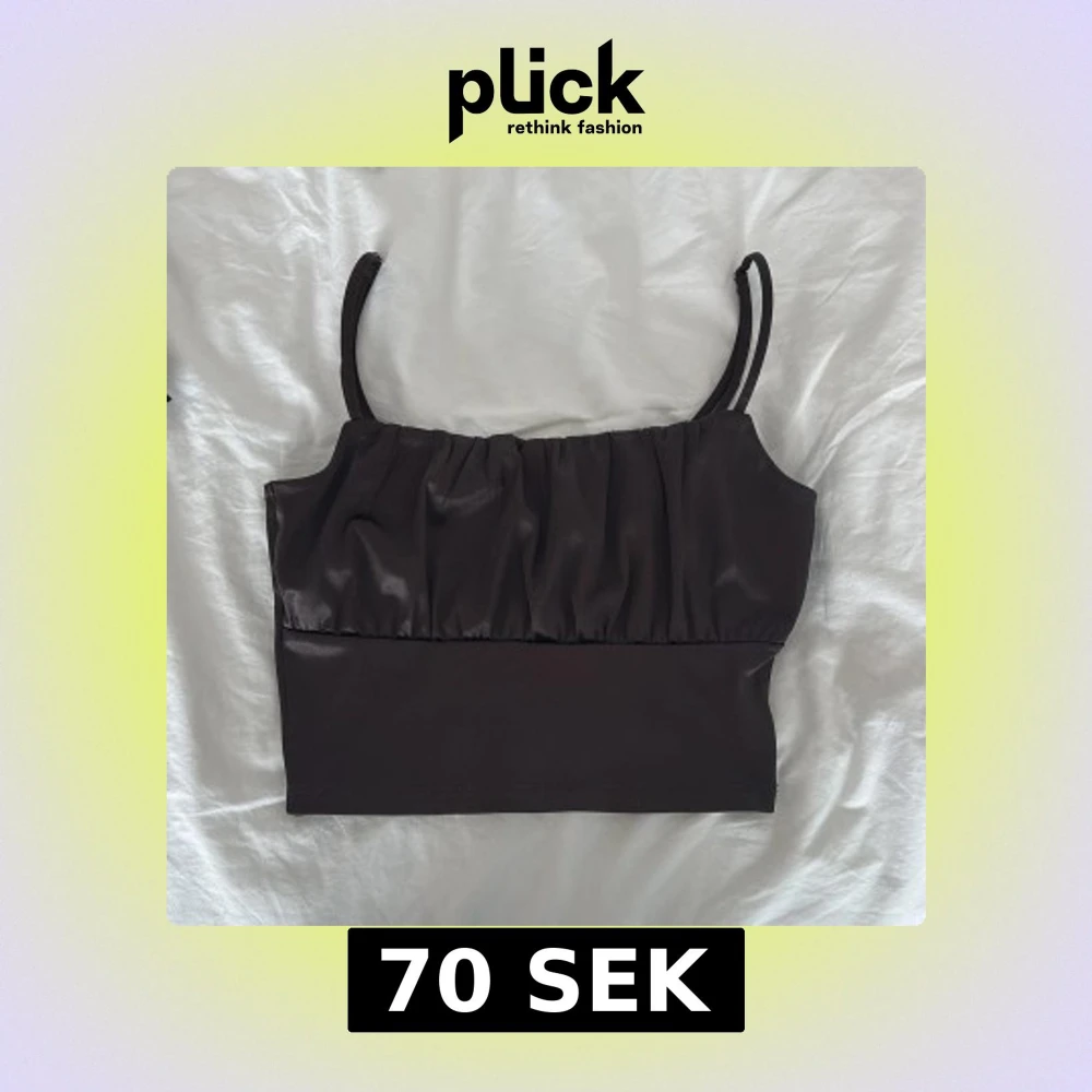 Säljer en svart croppad silkes topp med smala axelband och rynkade detaljer framtill. Köpt från hm.