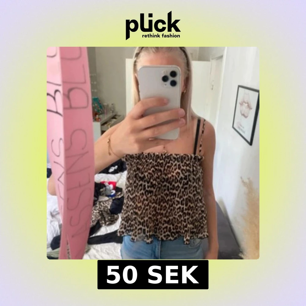 Säljer en snygg ärmlös linnetopp med leopardmönster. Toppen har smala axelband och en luftig, lätt rynkad passform som ger en cool och avslappnad vibe. Perfekt att matcha med jeans eller kjol för en trendig look.