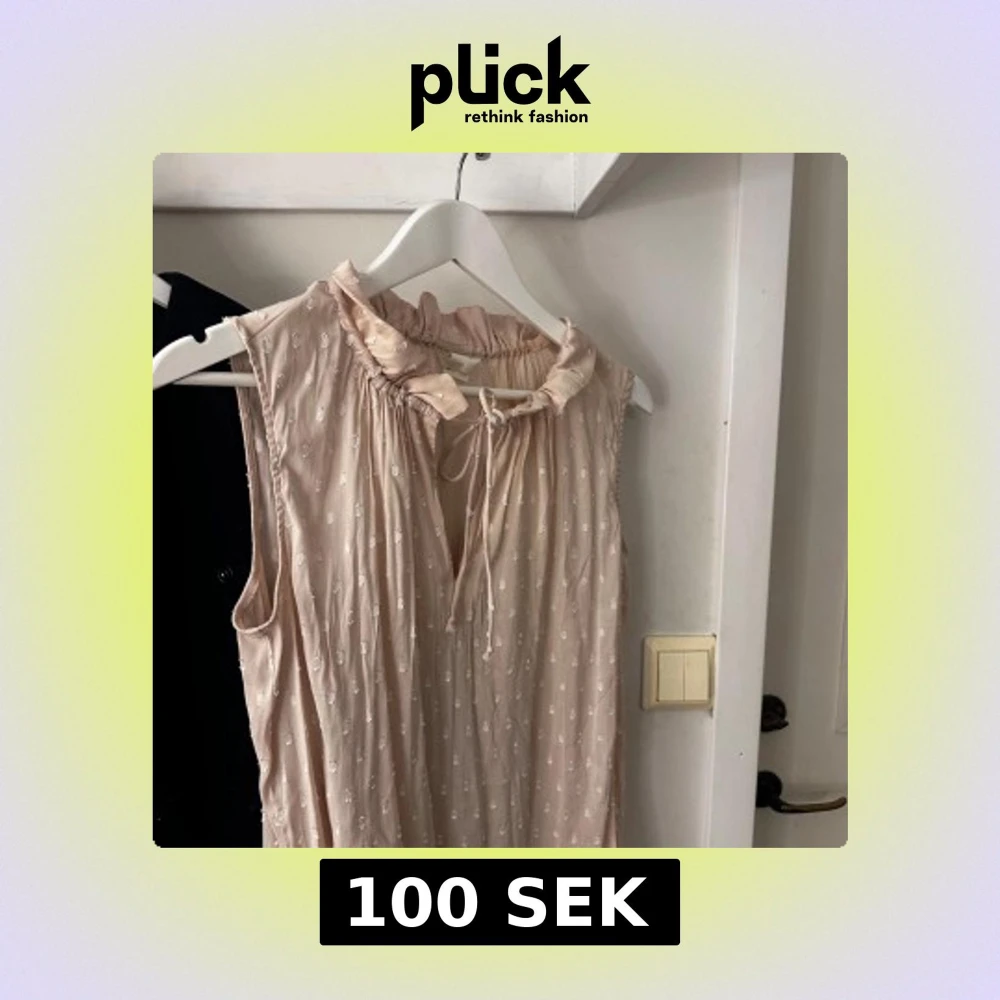 Säljer en söt ljusrosa ärmlös topp från H&M med diskret mönster och knytband vid halsen. Perfekt för varma dagar och ger en romantisk touch till din stil. 💕