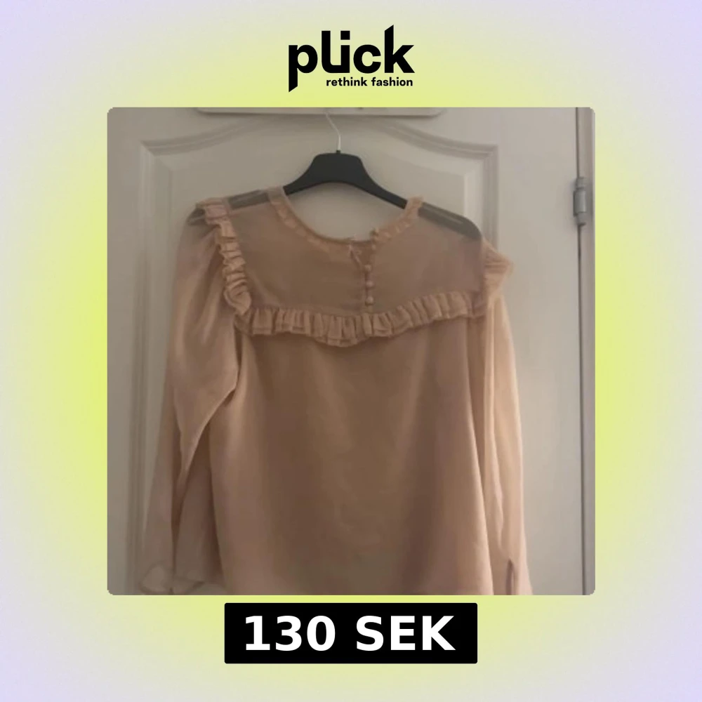 Supersöt beige blus i transparent material med långa ärmar. Blusen har volangdetaljer över axlar och bröst samt små knappar framtill. Perfekt för dig som gillar romantisk och feminin stil. Från h&m
