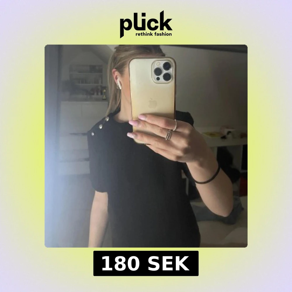 Fin svart topp från H&M i storlek M men passar mig som har xs/s. Den har 3 silverknappar på ena axeln. Fint skick💗