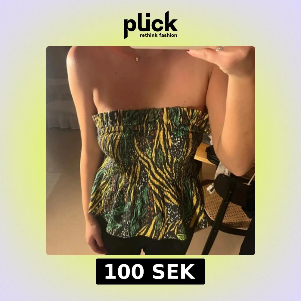Säljer en tubtopp från H&M i storlek 38 med elastisk smock och volangkant. Mycket bra skick!
