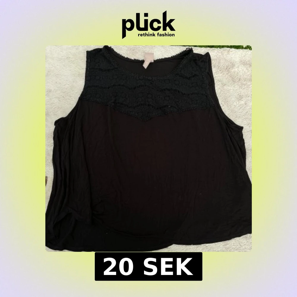 Svart ärmlös topp från H&M i storlek 3XL. Toppen har en snygg spetsdetalj över bröstet och en mjuk, flowy passform. Perfekt för dig som gillar en enkel men ändå cool look. Materialet känns lätt och bekvämt mot huden.