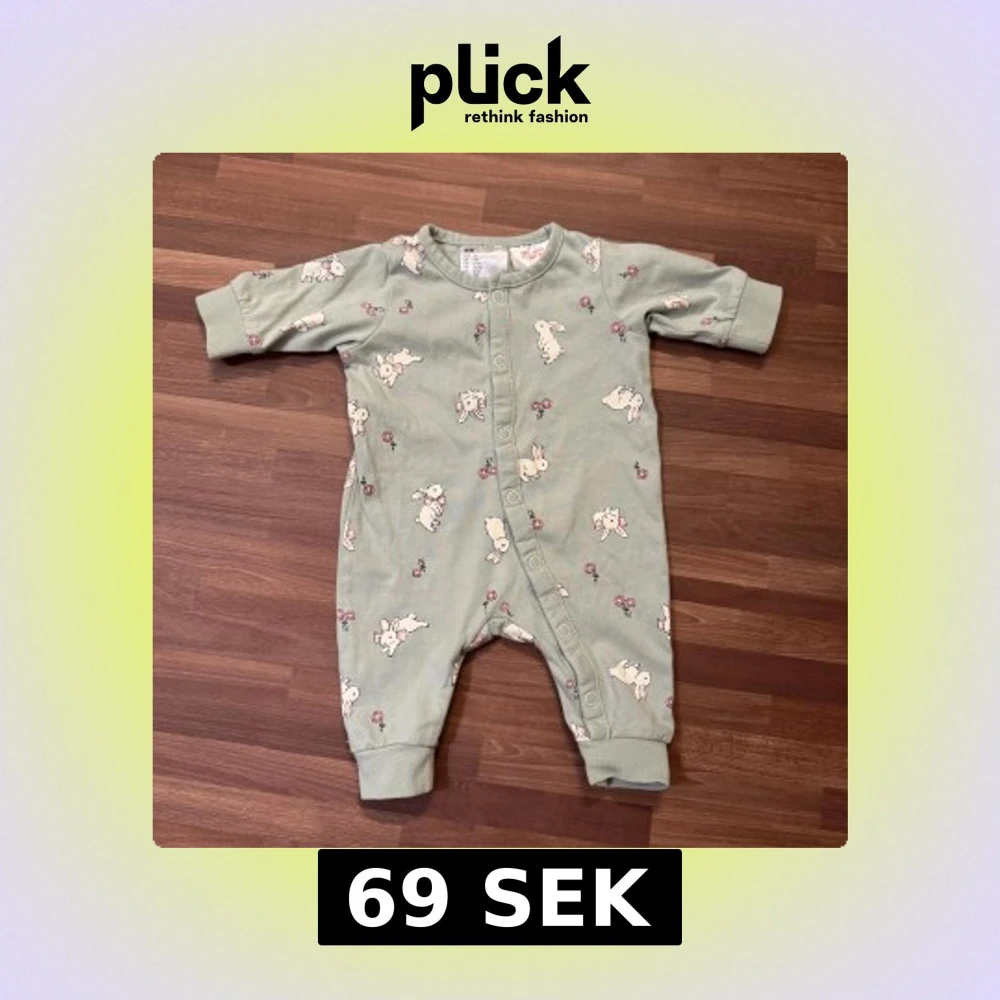 Supergullig ljusgrön jumpsuit från H&M i storlek 50 (0-1mån). Oanvänd, endast upptvättad så är i nyskick.