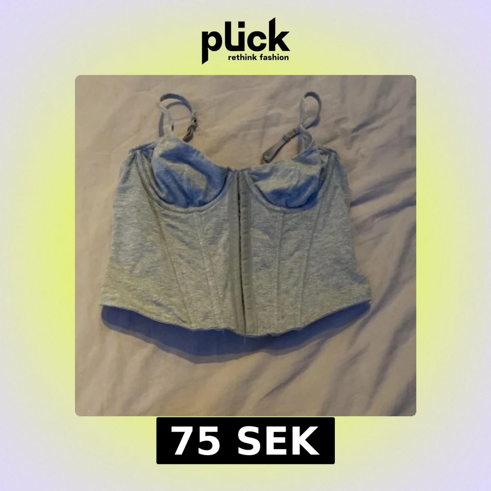 Snygg grå korsett-topp med justerbara axelband och markerade sömmar för en cool siluett. Toppen har en croppad passform och mjukt bomullsmaterial som känns skönt mot huden. Perfekt att styla med jeans eller kjol för en trendig look.