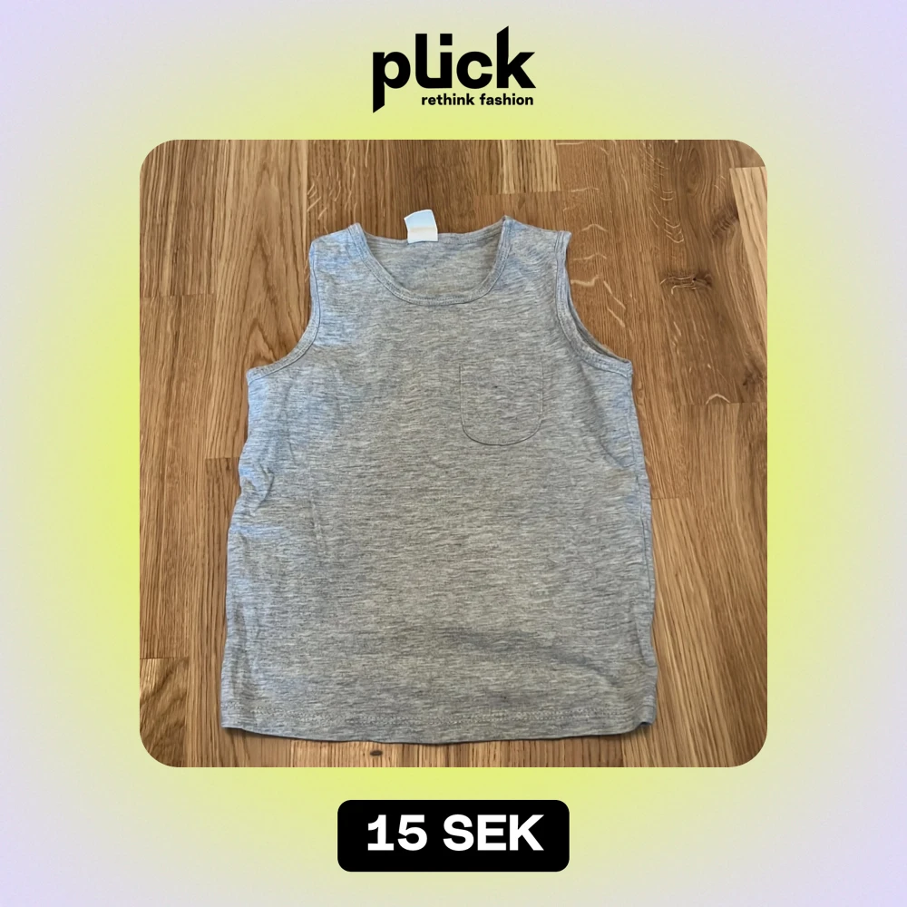 Säljer en enkel och stilren grå ärmlös topp från H&M i storlek 86. Perfekt för varma dagar eller som ett basplagg i garderoben. Toppen har en liten bröstficka som detalj.