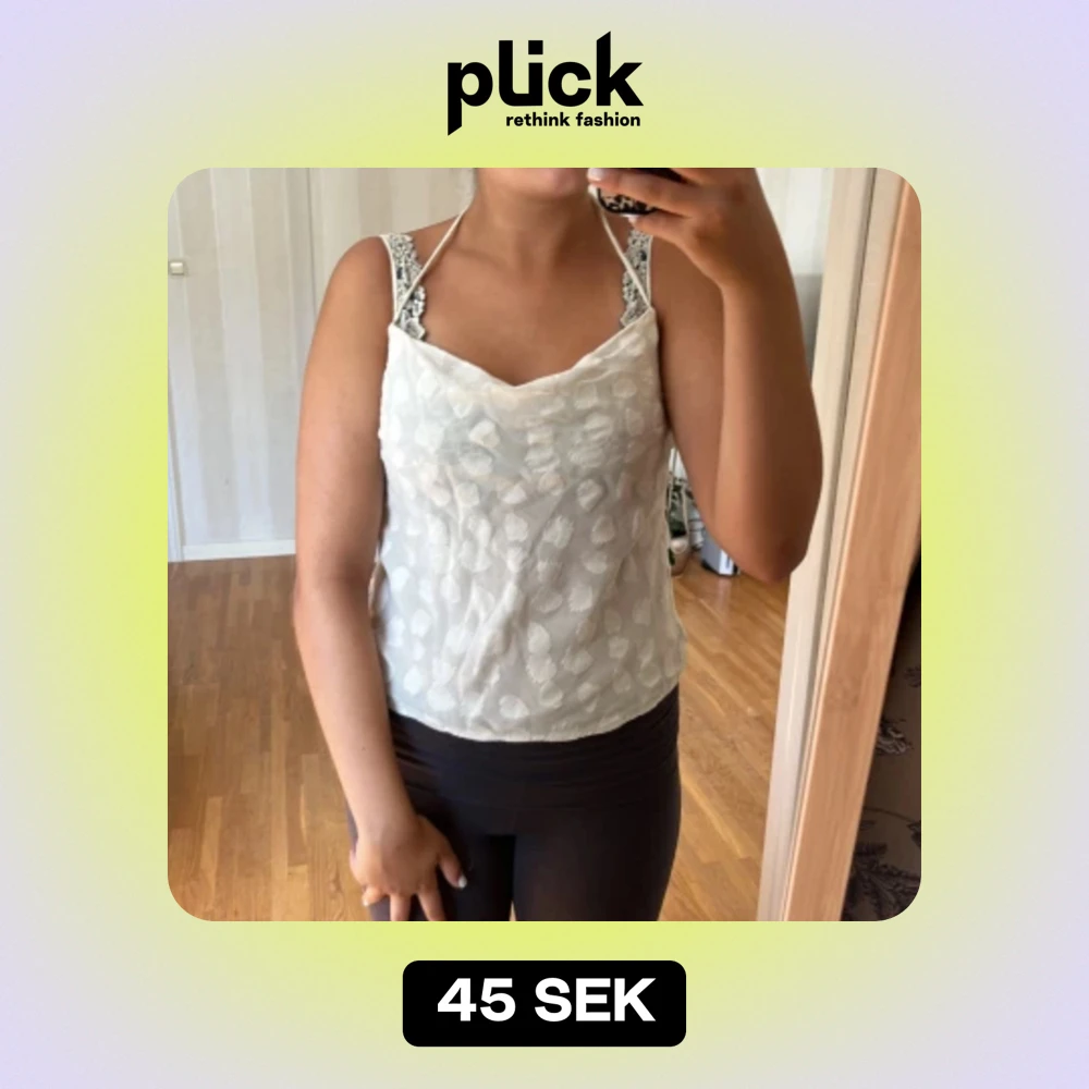 Säljer en söt vit linnetopp från H&M i storlek XS. Toppen har ett blommigt mönster och smala axelband. Den är perfekt för sommaren och har en knytning i ryggen för en justerbar passform. Toppen är i nyskick.