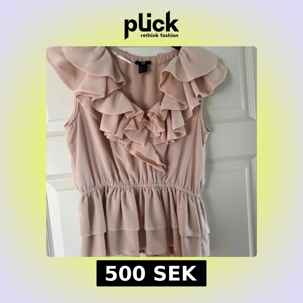 Supersöt ljusrosa blus med volanger runt halsringningen och axlarna. Ărmlös modell med markerad midja och lĂ€tt utsvĂ€ngd nederdel. SlutsĂ„ld överallt och sĂ€ljs inte lĂ€ngre. Storleken Ă€r mindre i storleken skulle sĂ€ga den passar mellan L, M och S.â€ïž