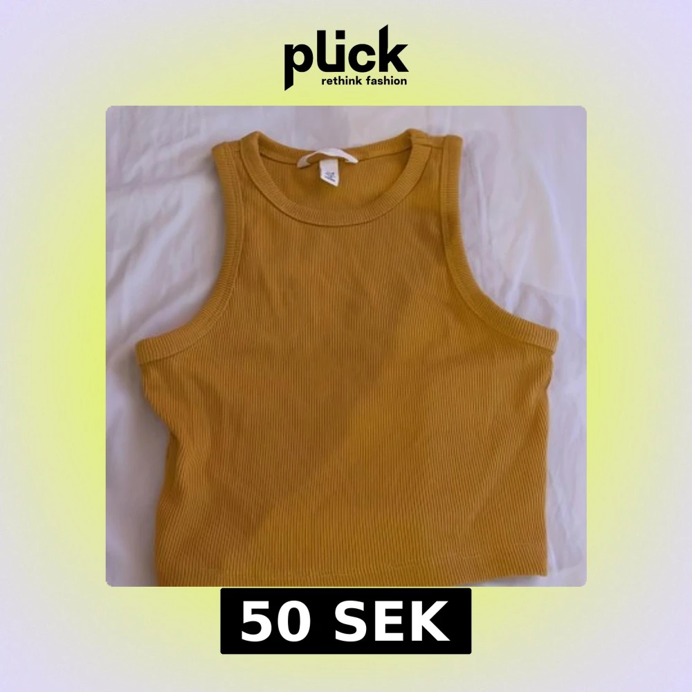 Säljer en snygg gul ribbad linnetopp från H&M. Perfekt för varma dagar med sin ärmlösa design och bekväma passform. Ett måste i garderoben för en stilren look. 🌼