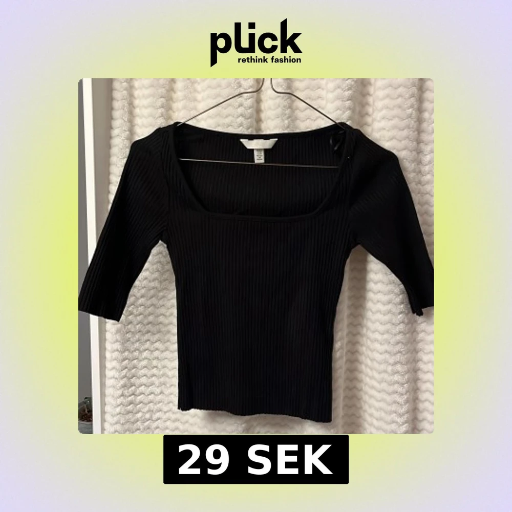 SĂ€ljer en stilren svart ribbad topp frĂ„n H&M med trekvartsĂ€rm och en fyrkantig halsringning. đ