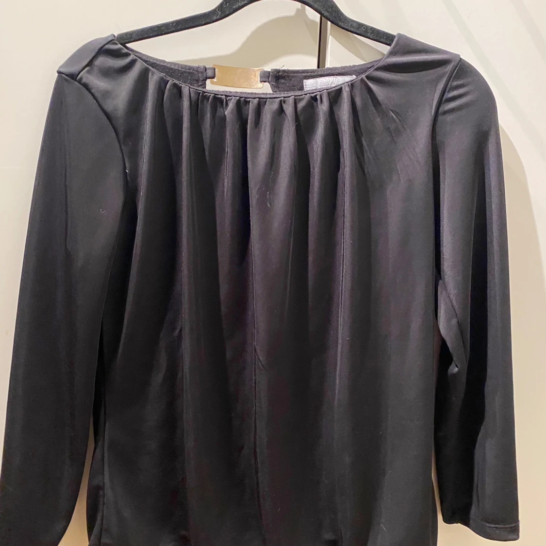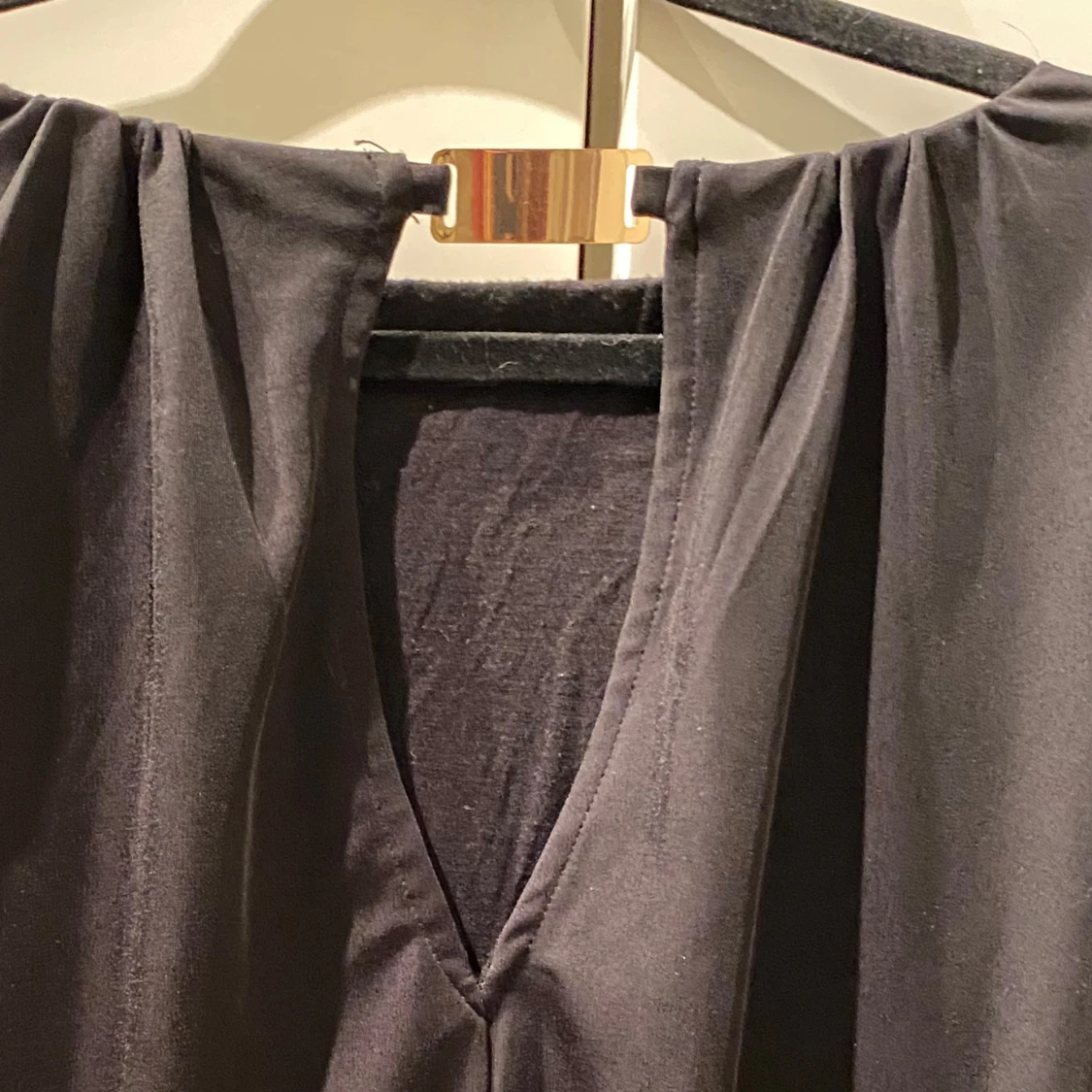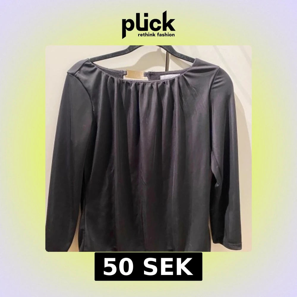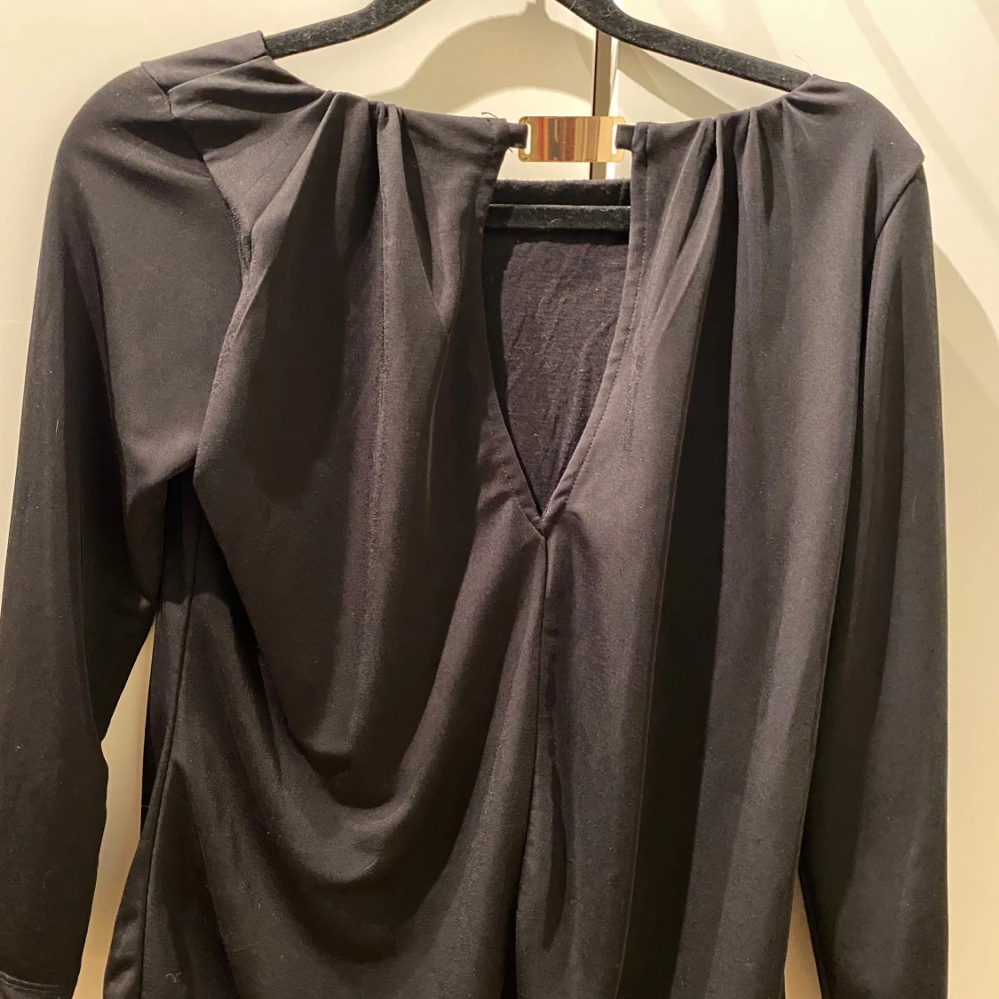 Snygg svart trekvart ärmad topp från H&M med en elegant drapering framtill. Perfekt för en stilren look. Tillverkad i ett mjukt och bekvämt material.