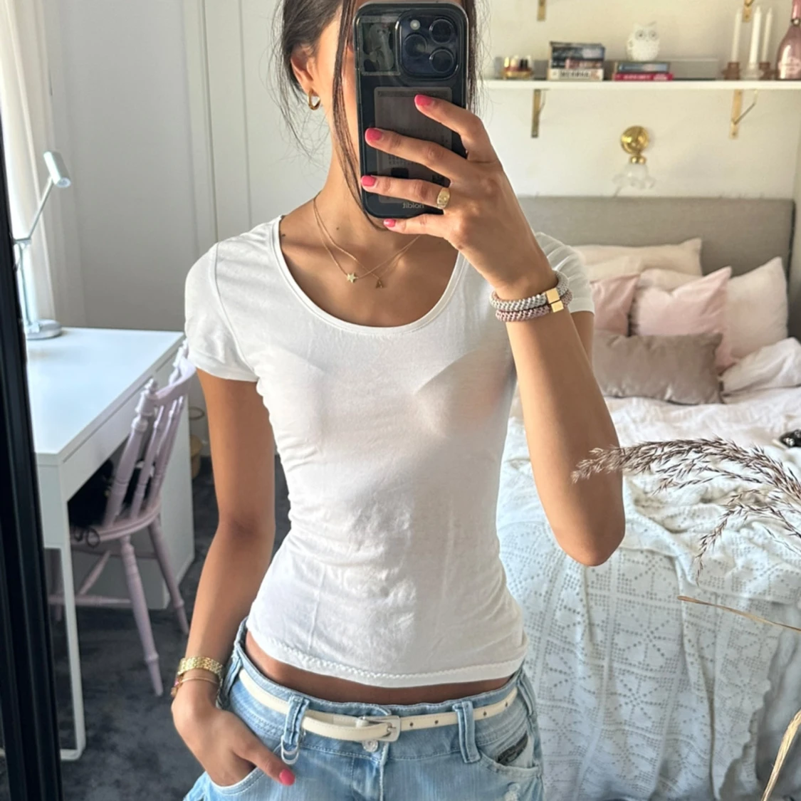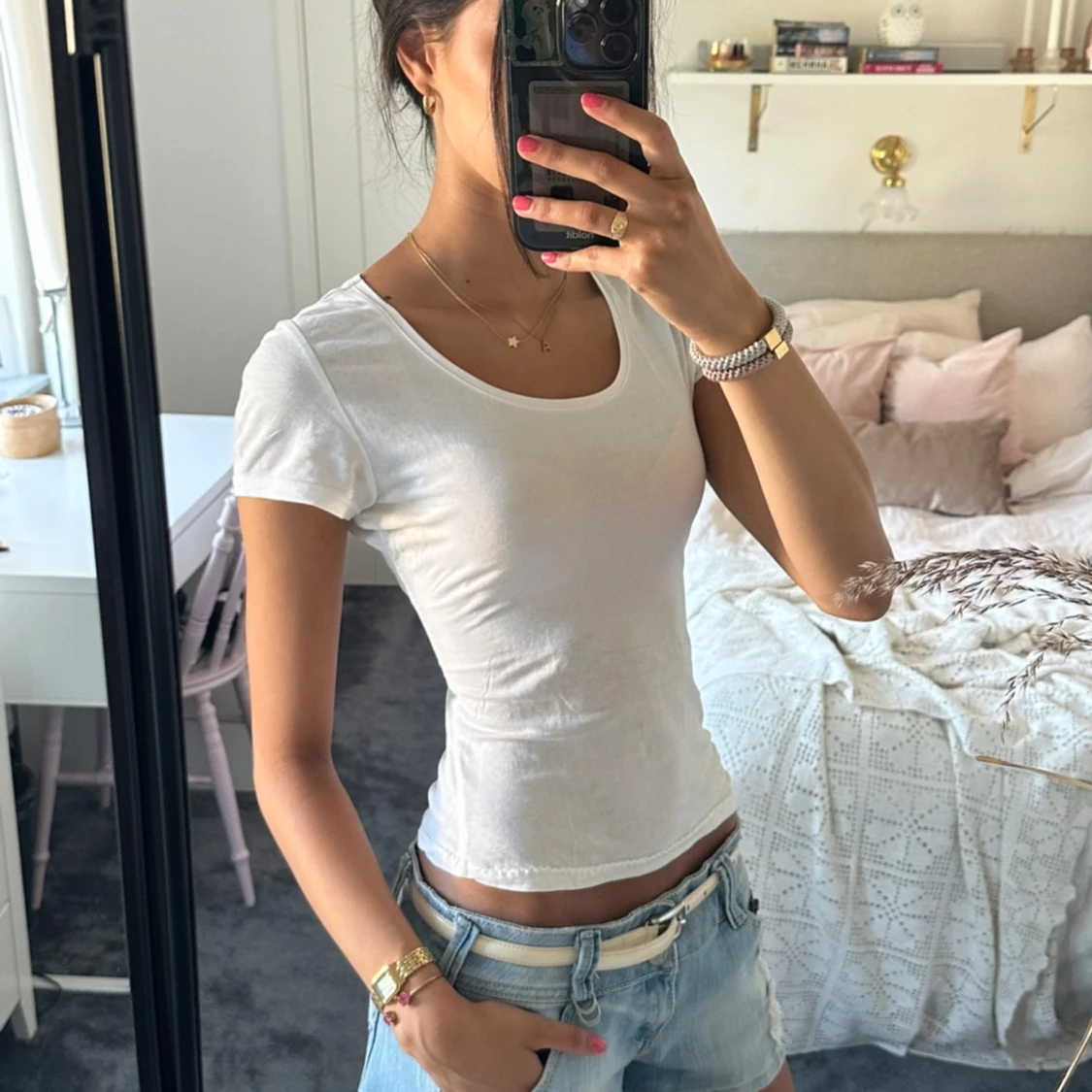 Hej!! Säljer denna jättesöta T-shirten från hm. Omsydd för att bli figurnära och passar en xs skulle jag säga. Superskön och söt topp som passar till allt. Tveka inte på att skriva vid frågor och pris kan diskuteras!🤗