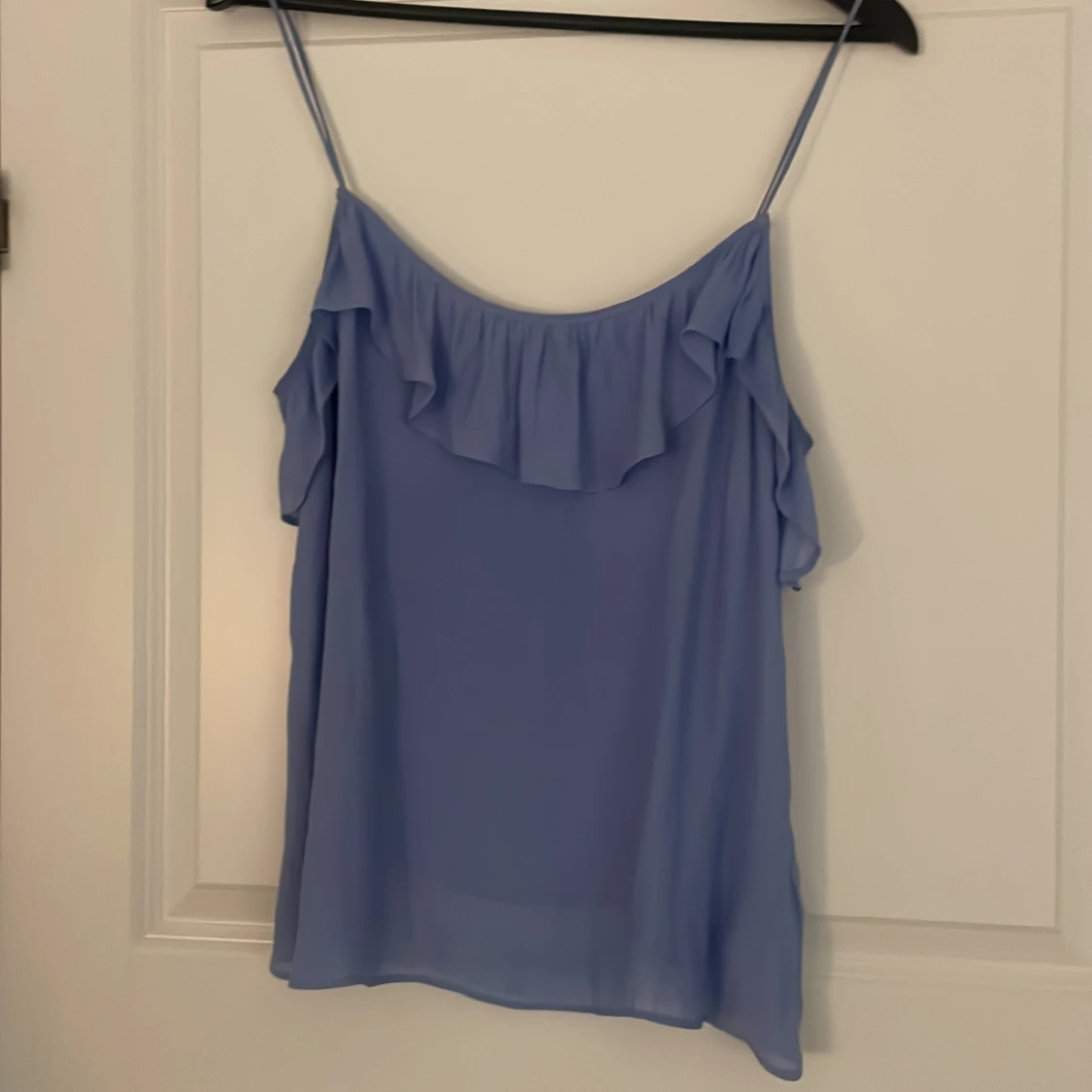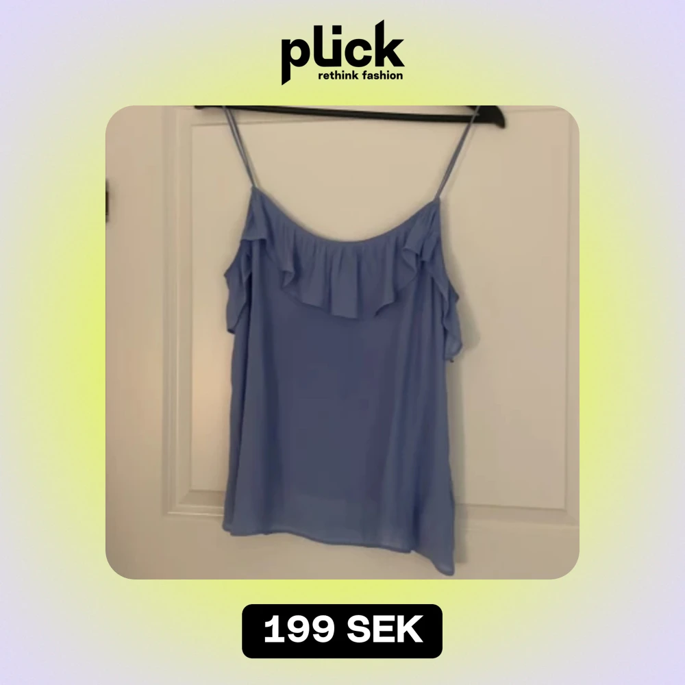 Super gulligt linne frĂ„n hm med volang runt hela kanten i himmelblĂ„đstorlek 42 men passar S-L