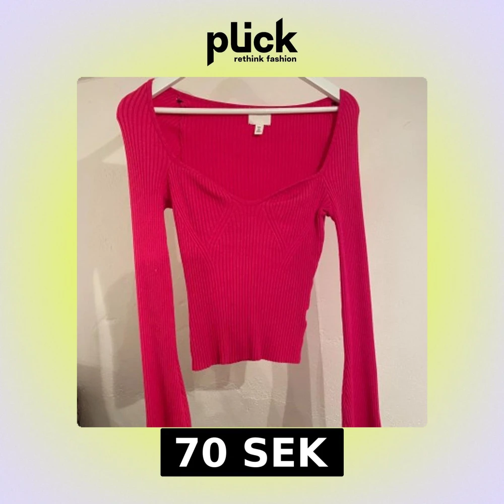 Snygg rosa ribbad topp från H&M med djup v-ringning och långa ärmar. Använd och smått nopprig men annars fint skick!